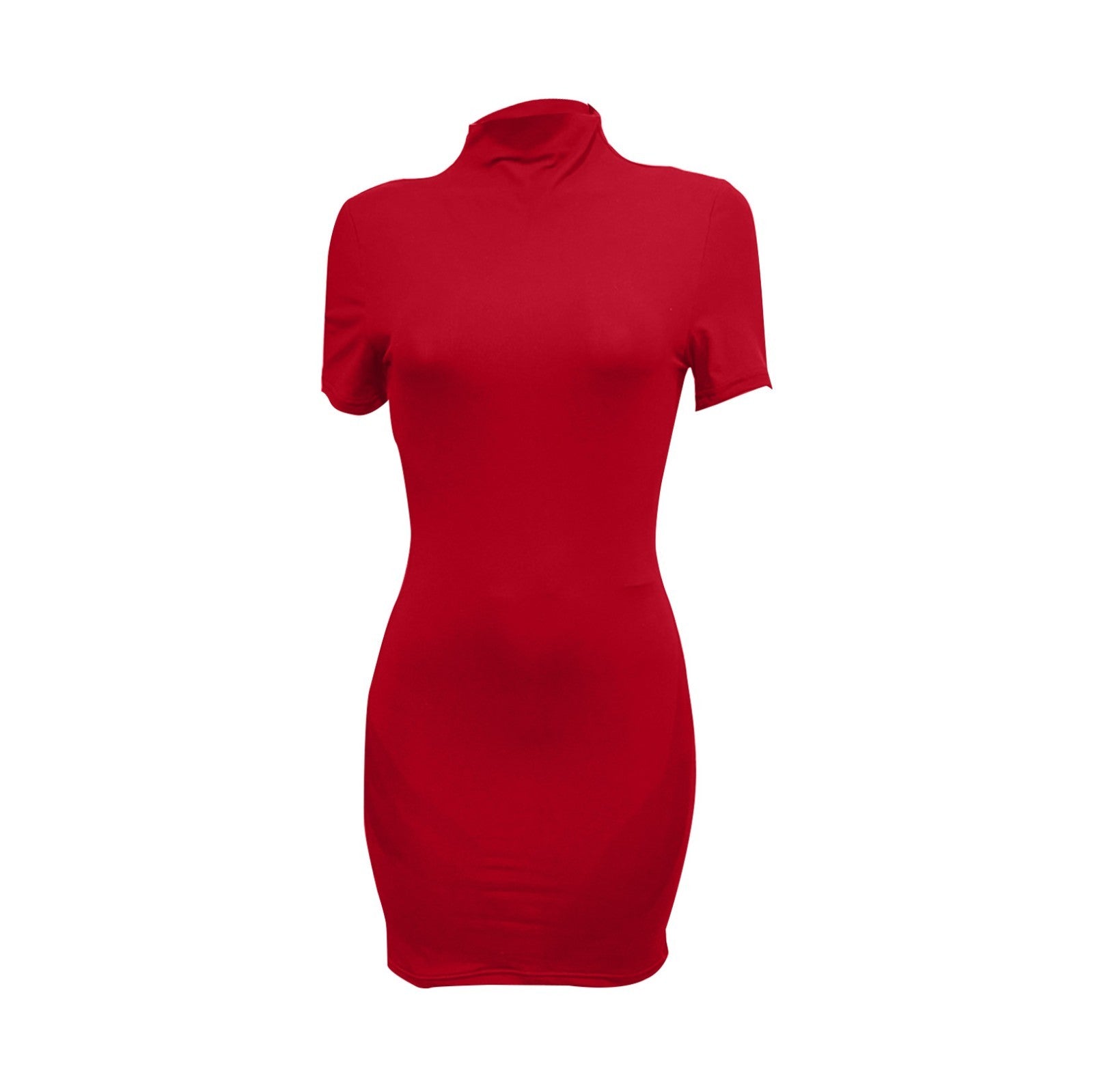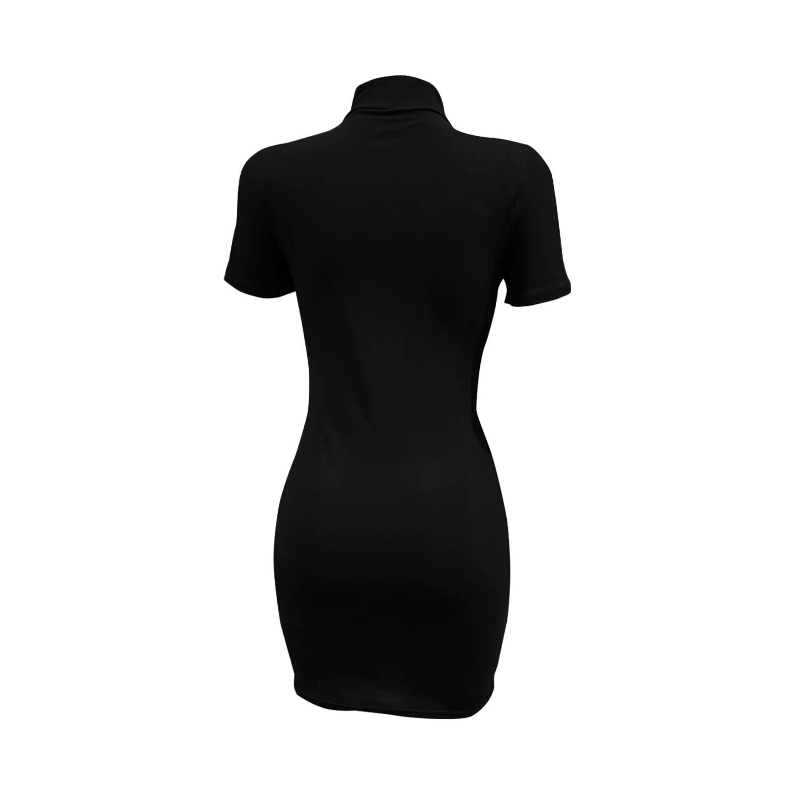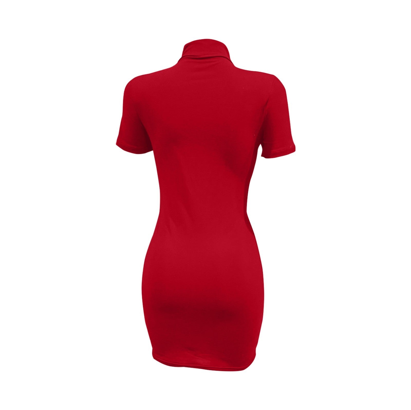 Fashion Solid Color High Collar Short Sleeves Slim Fit Versatile Temperament Short Slim Dress