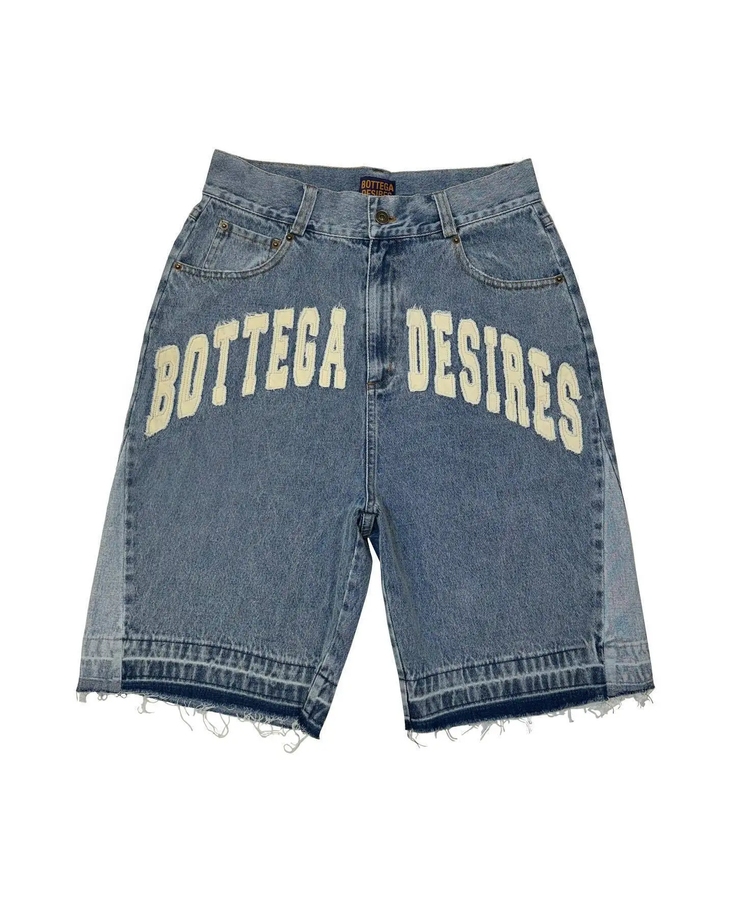 Bottega Desires Trend Men's Fried Street Loose Five-point Pants Fashion Trendy Brand Retro Y2k Letter Denim Shorts Baggy Jeans