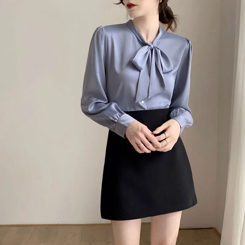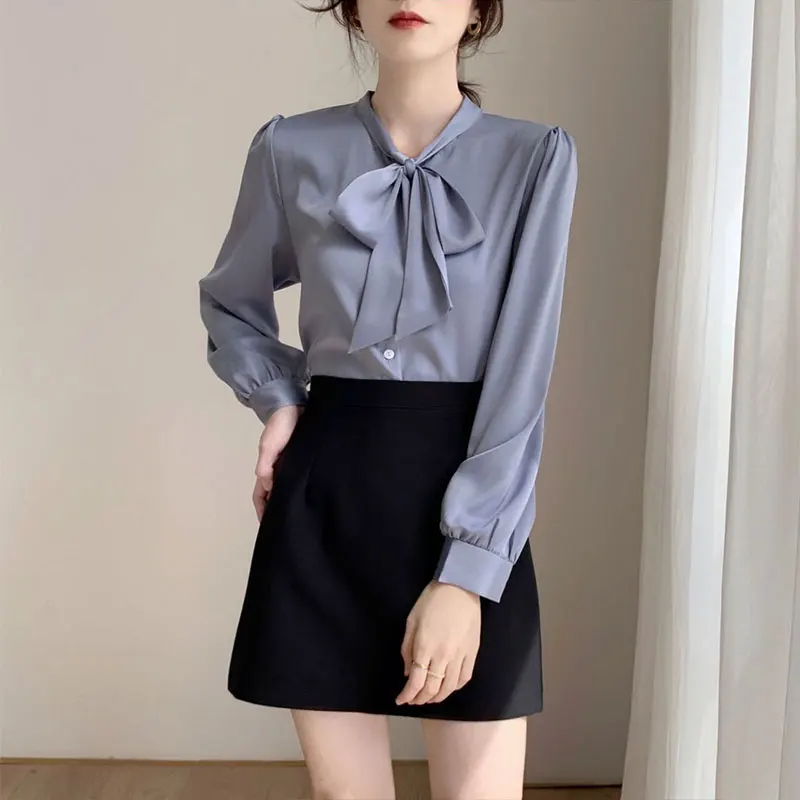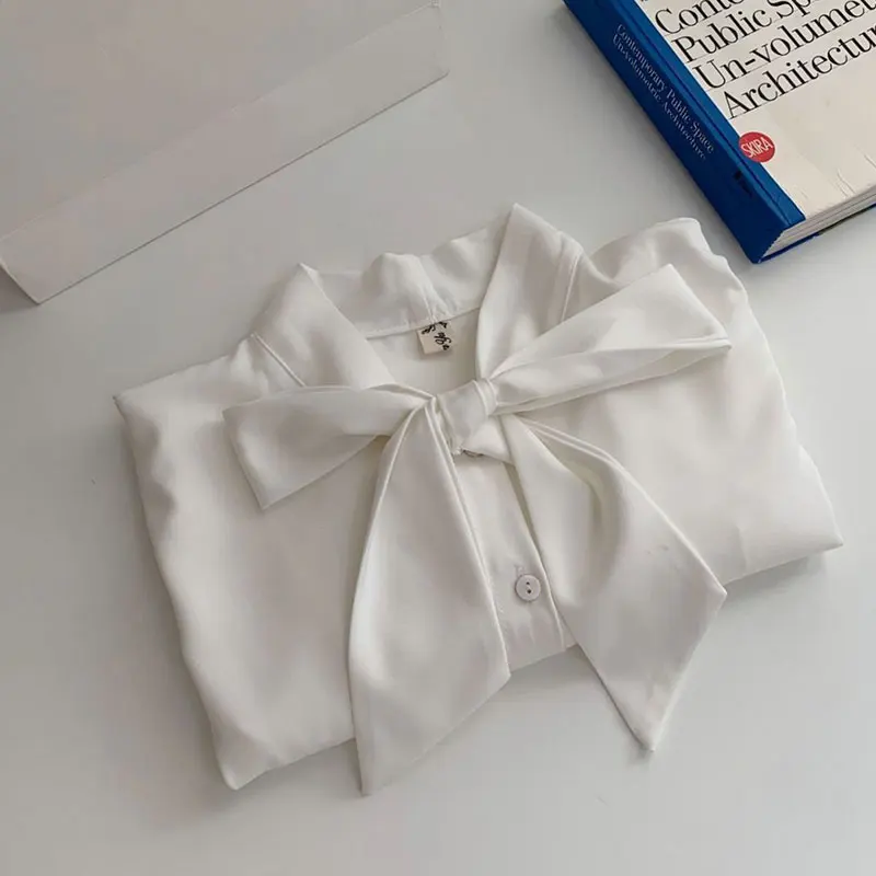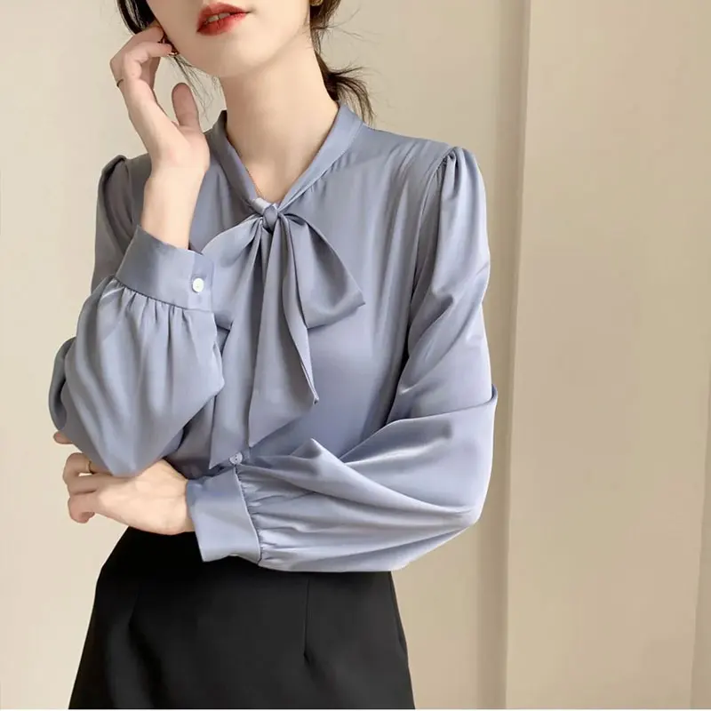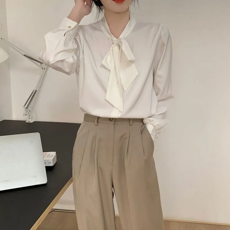 Bow Tie Chiffon Shirts Casual Long Sleeve White Blouse Women's Elegant Business Loose Blouses Ladies Spring and Autumn Chic Tops