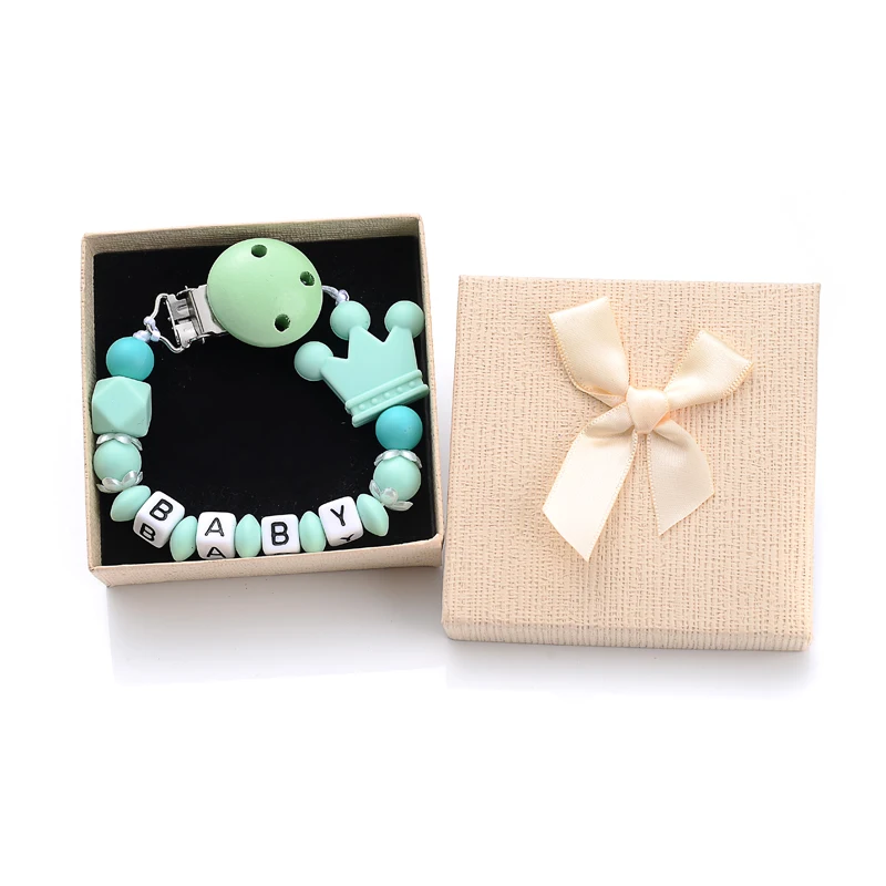 Boxed Personalized Name Baby Nipple Clips Silicone Beaded Soother Pacifier Chains DIY Nursing Toys Anti-Drop Dummy Holder Chain