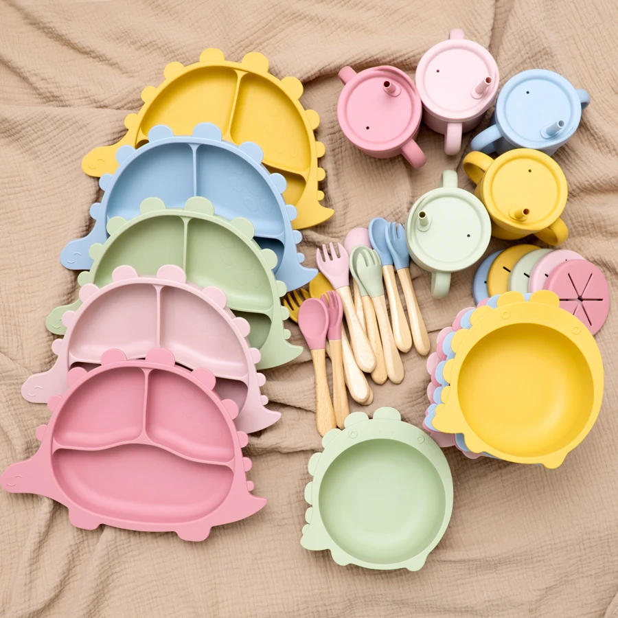BPA Free Baby Silicone Sucker Bowl Plate Children's Tableware Training Fork Spoon Portable Feeding Snack Cup Dining Appliance