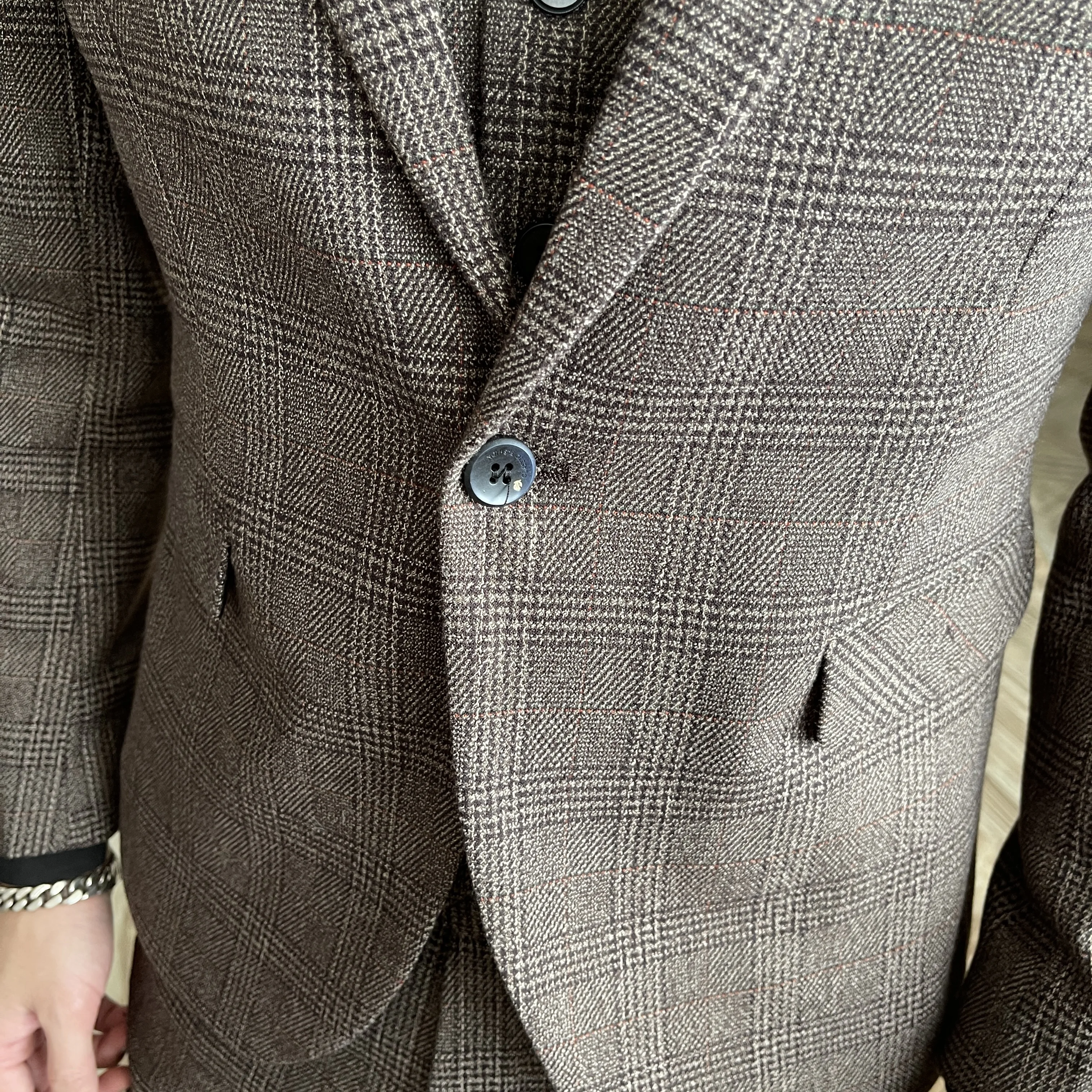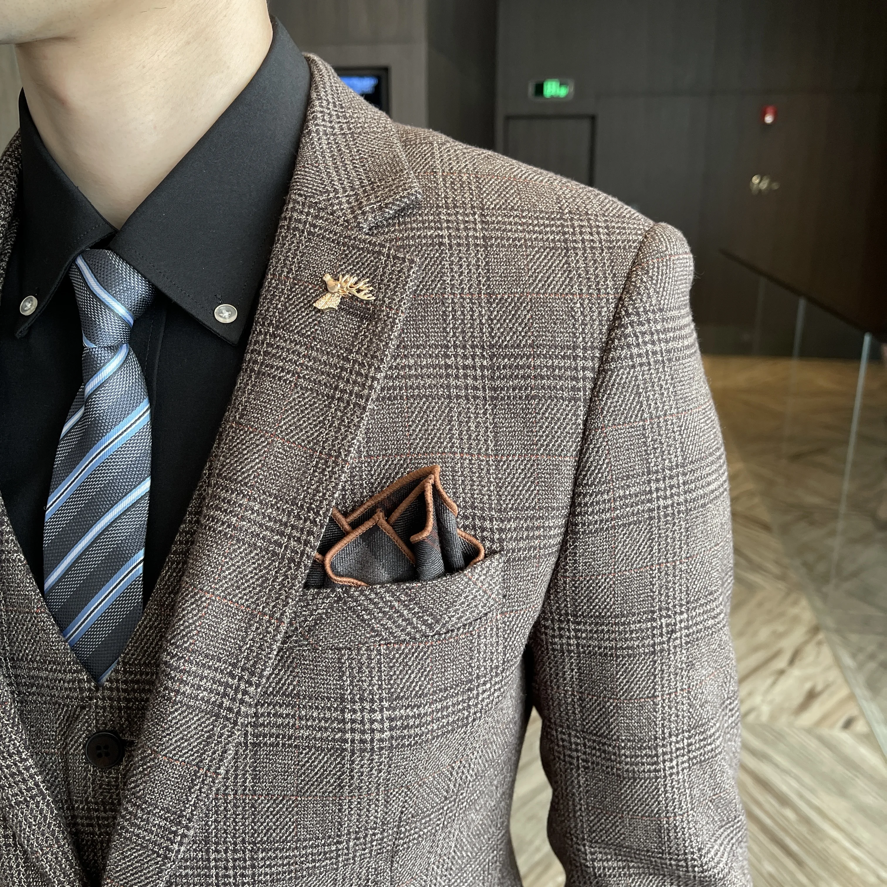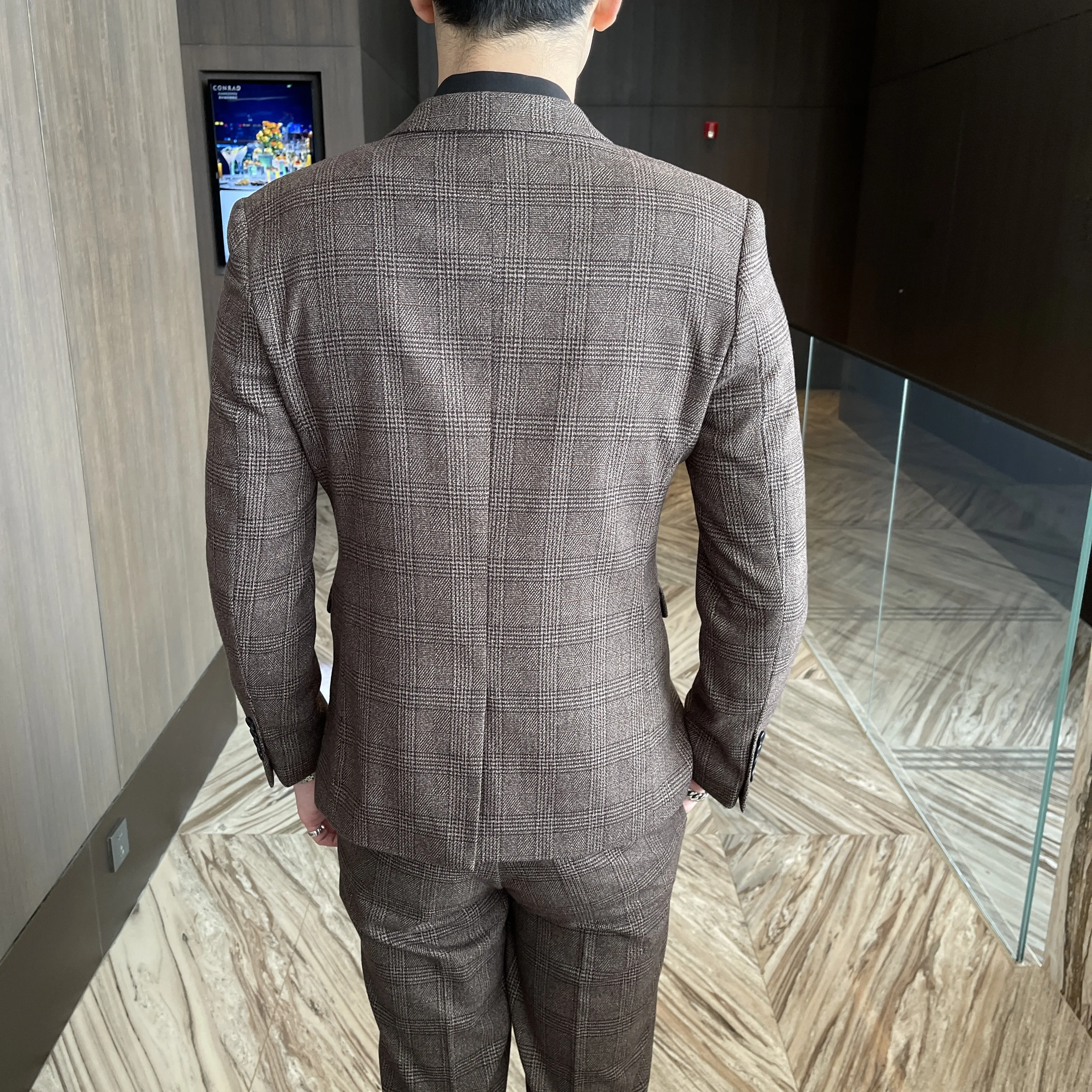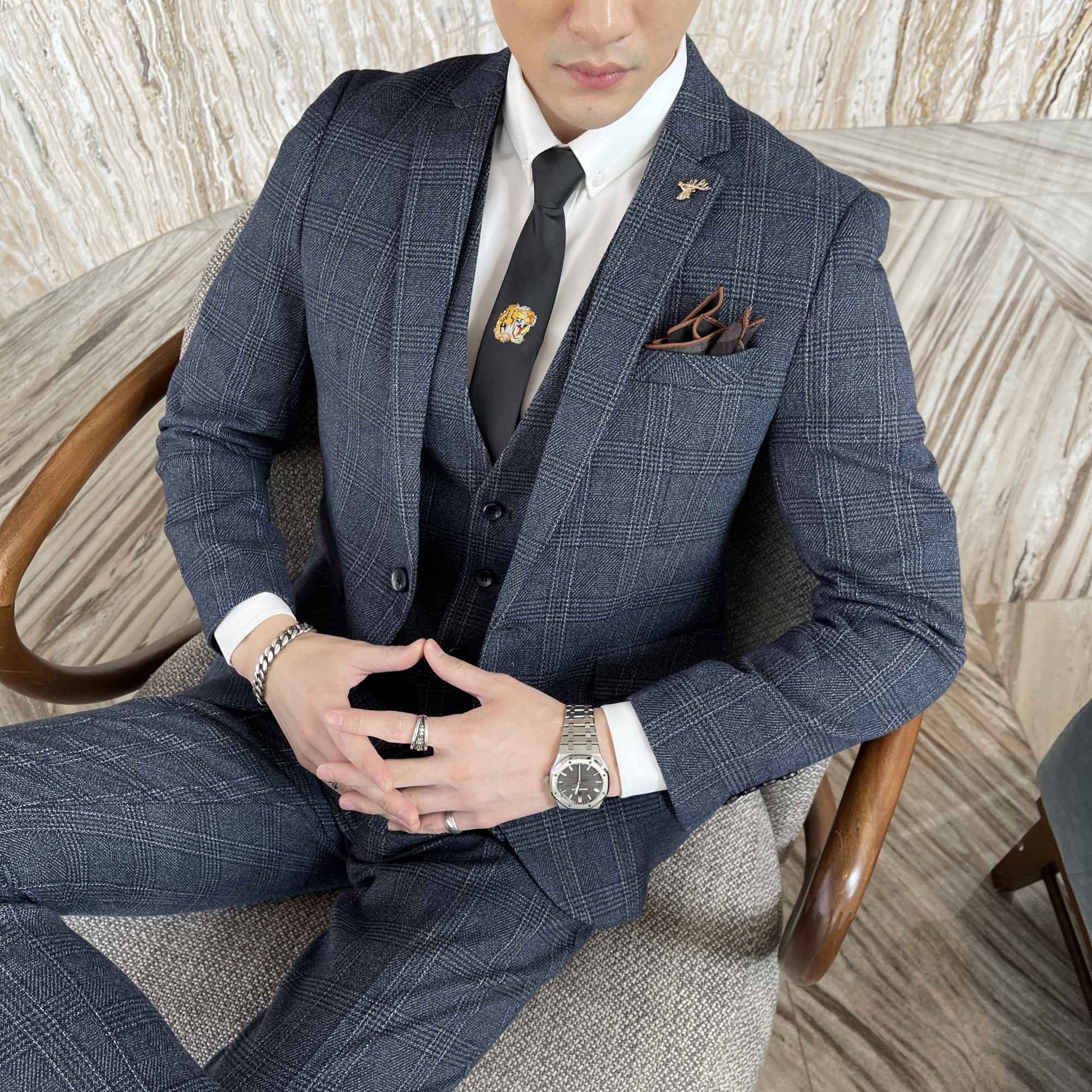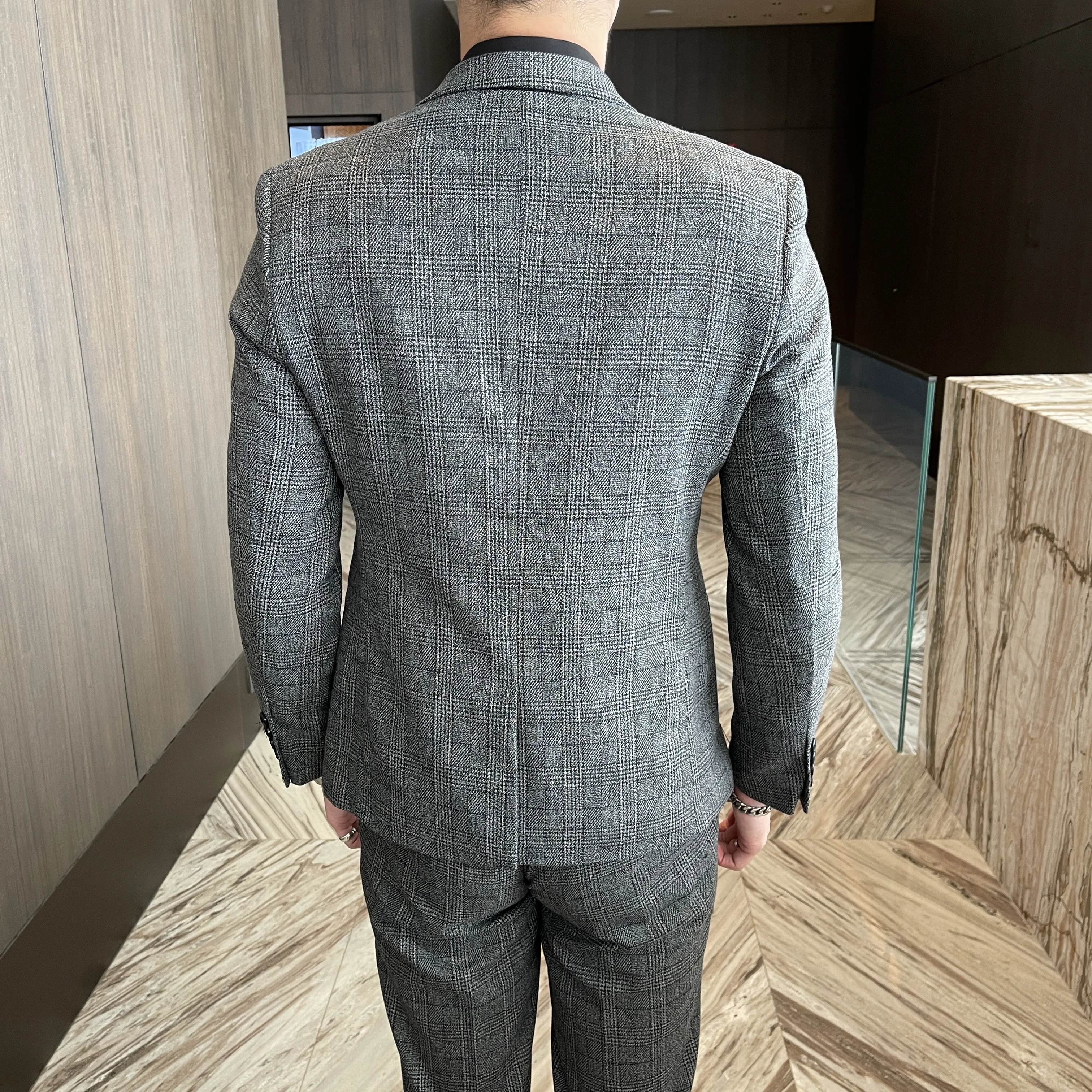 British Korean Style High Quality Modified Plaid Three-Piece Suit for Men - Stylish Business Casual Suit Vest And Trousers Set