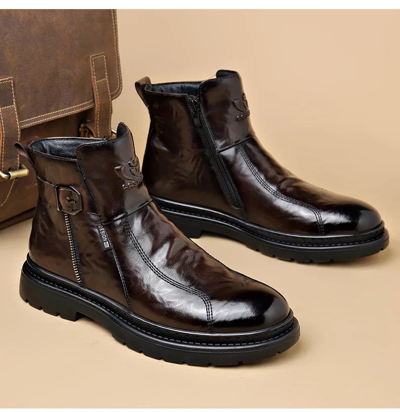 British-style Men's Casual Retro Chelsea Boots for Men Autumn Winter Cow Leather Shoes Male Fashion New Designer Ankle Boots Man