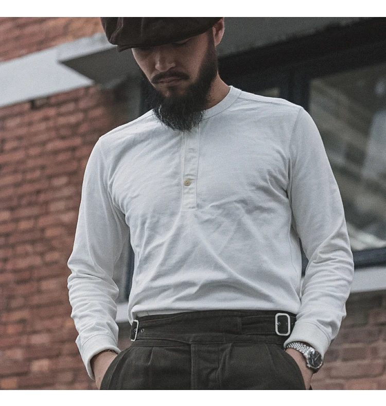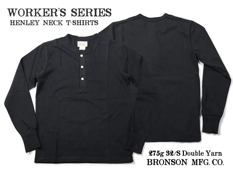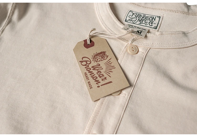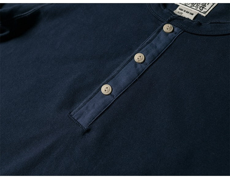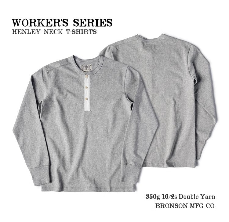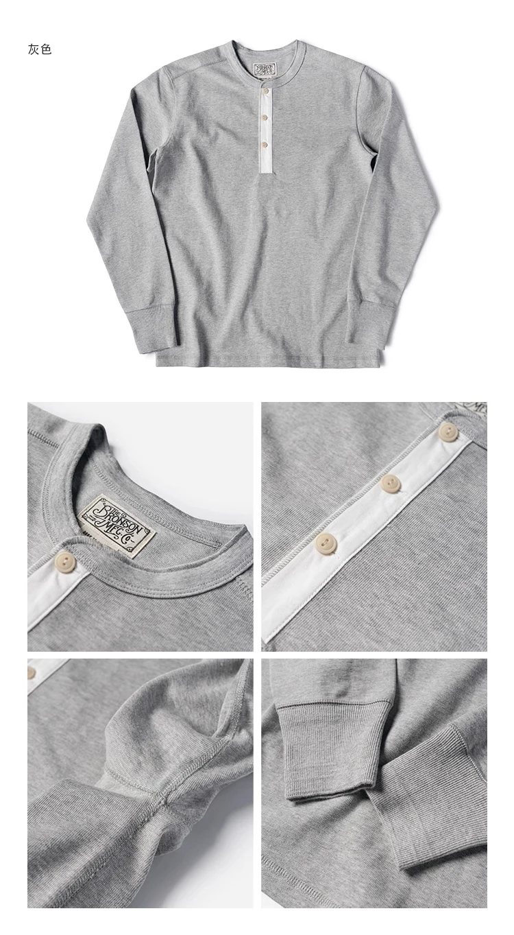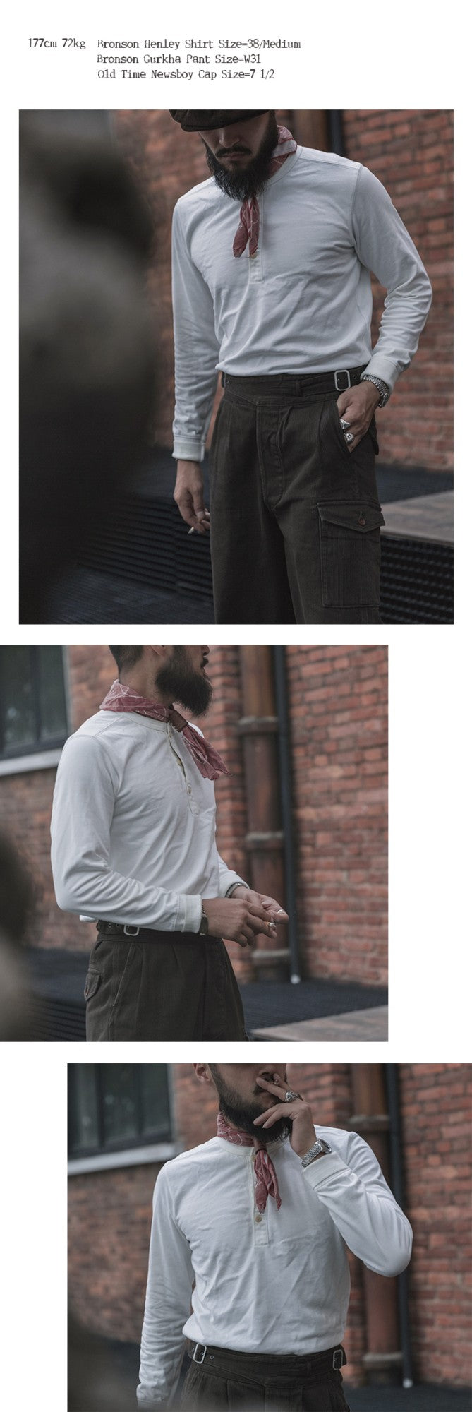 Bronson 350g Heavyweight L/S Henley Shirt Vintage Plain Base T-Shirt For Men
