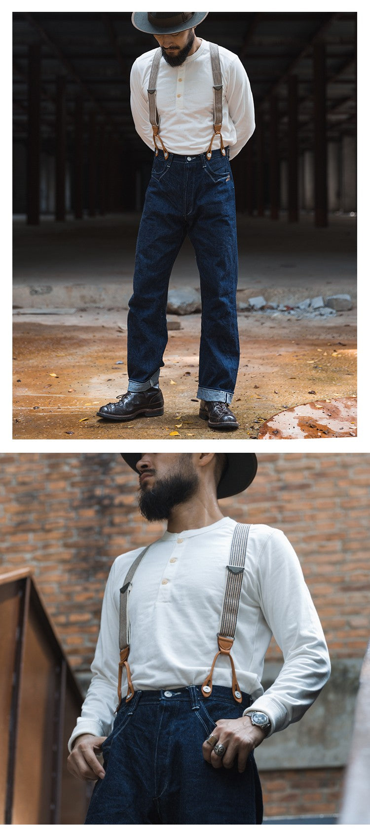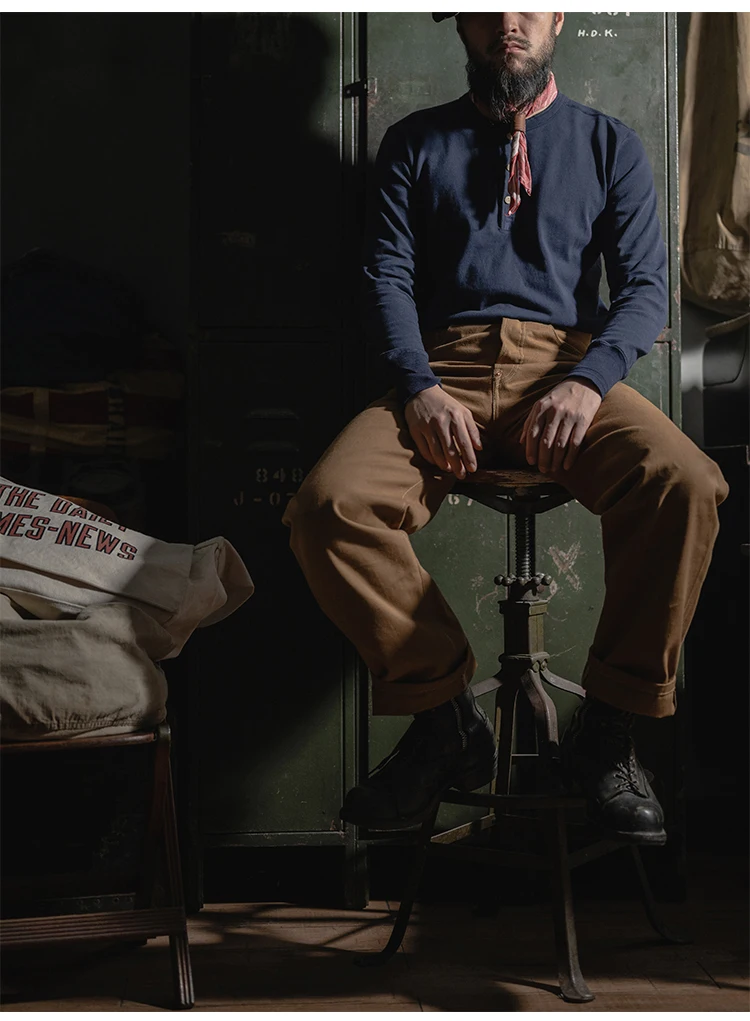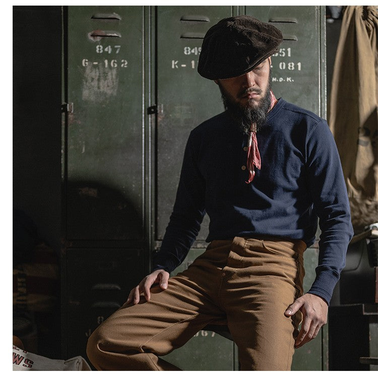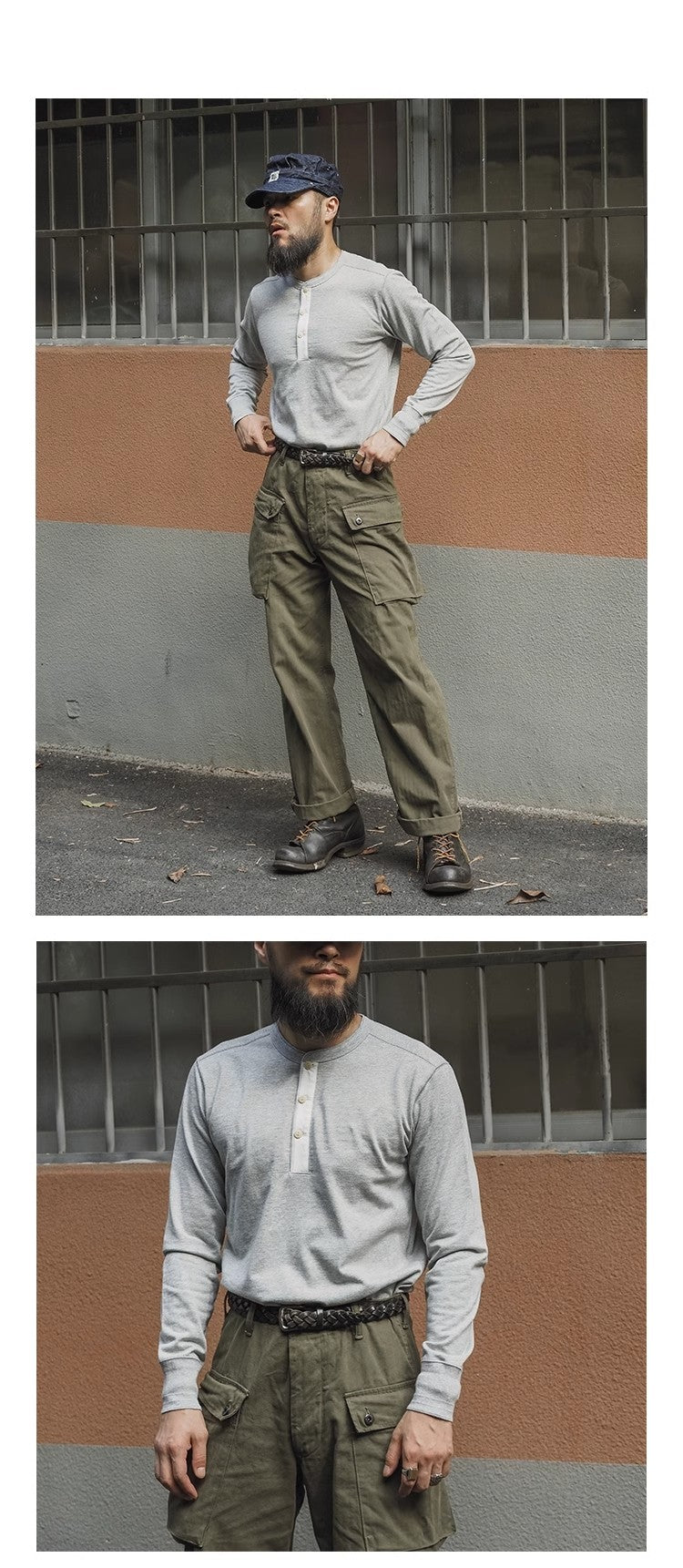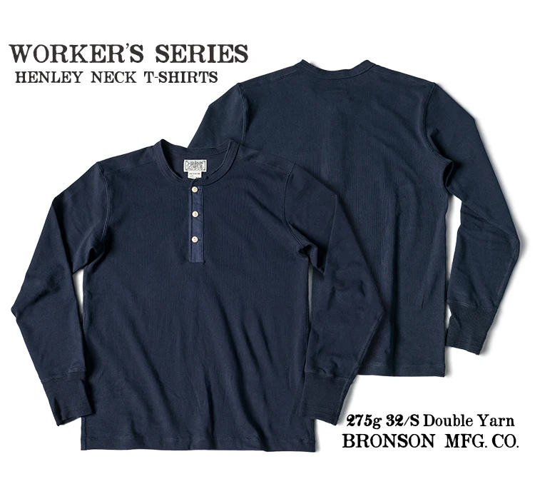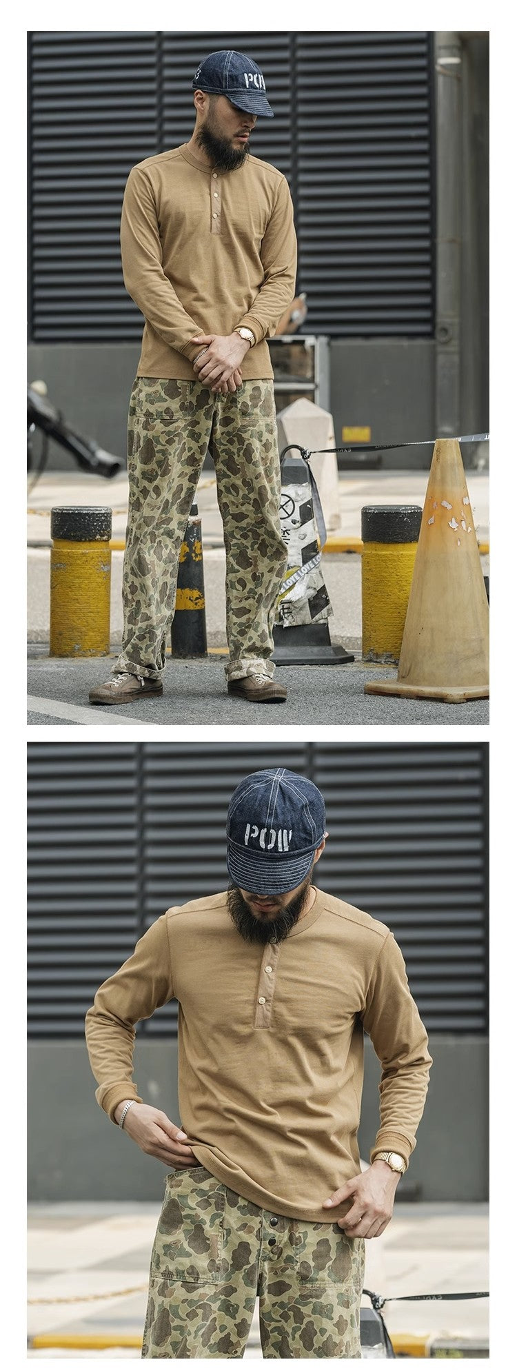 Bronson 350g Heavyweight L/S Henley Shirt Vintage Plain Base T-Shirt For Men