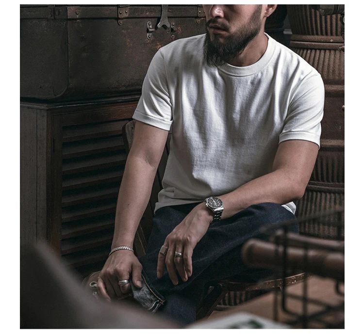 Bronson Heavyweight Seamless Tubular T-Shirt Summer Men's Plain Basic Tee Shirts