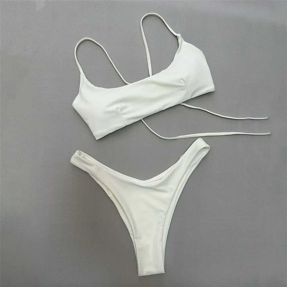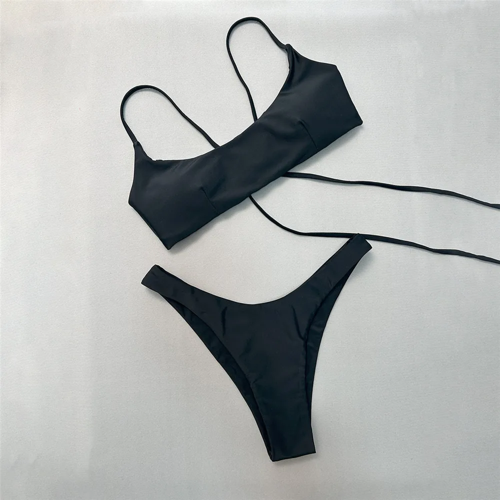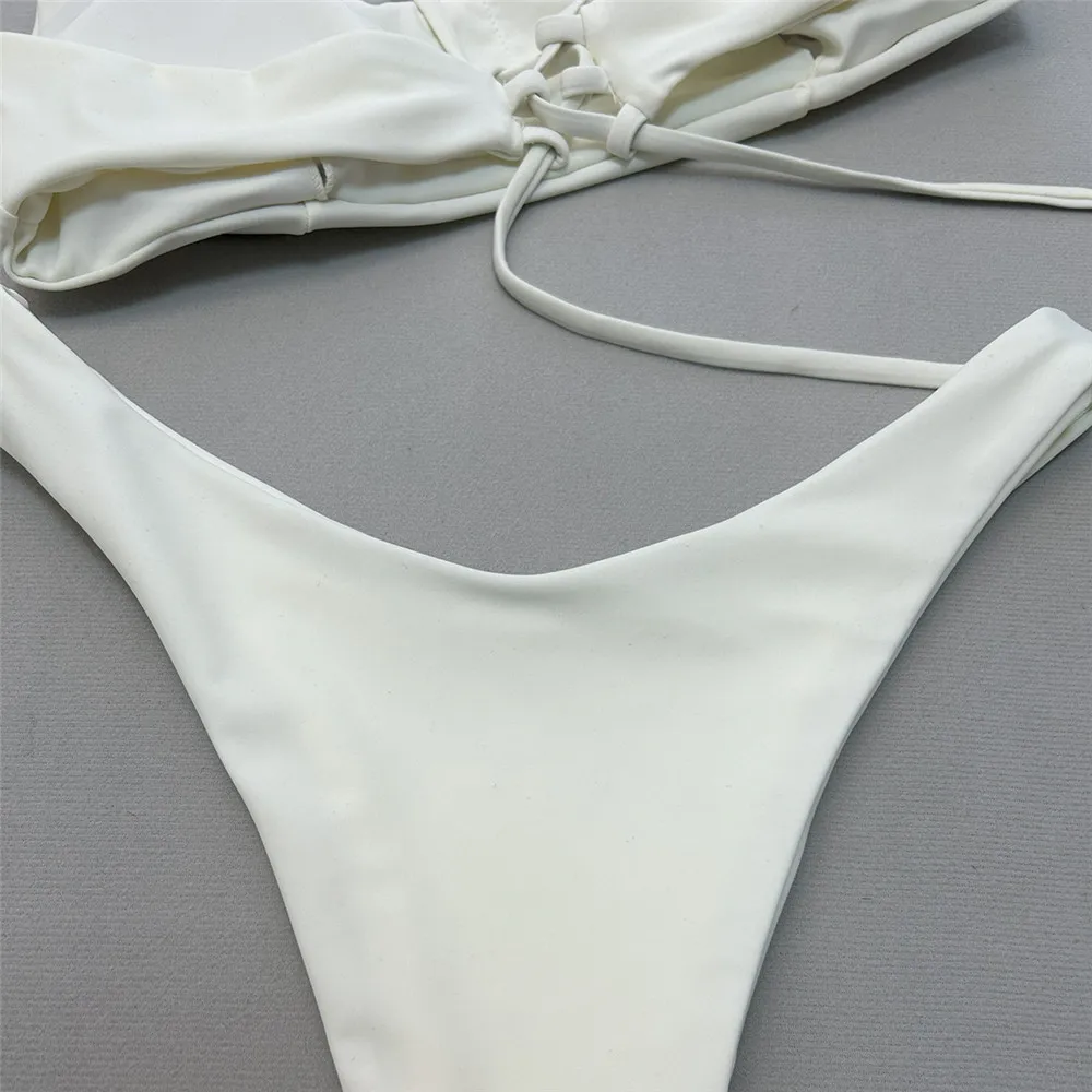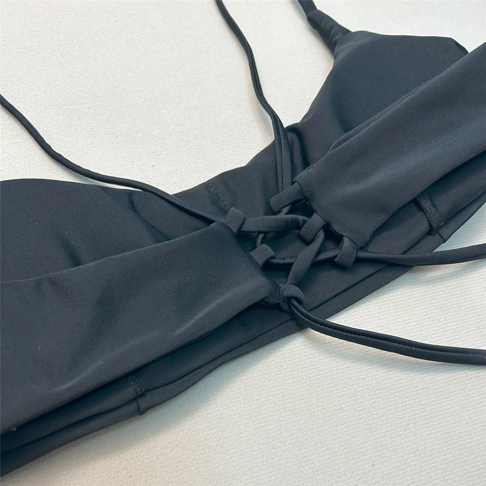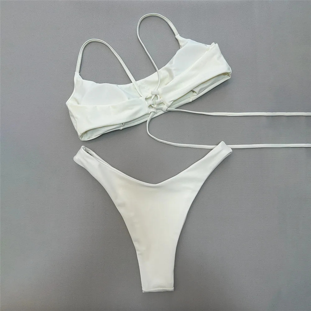 Brown Bandeau Micro Bikini Set Back String Lace-up Sexy Swimsuit Solid Swimwears Woman 2025 High Cut Bathing Suit Bikinis Femmes