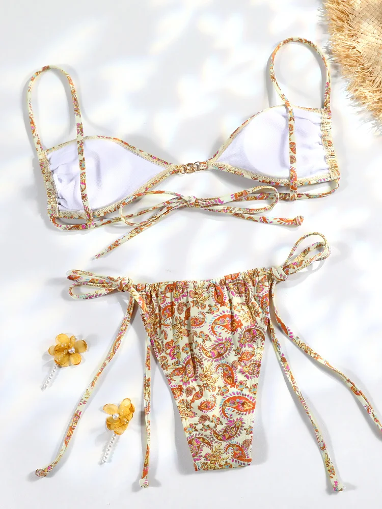 2025 Ties Bathing Suit: Low Waist Thong Biquini