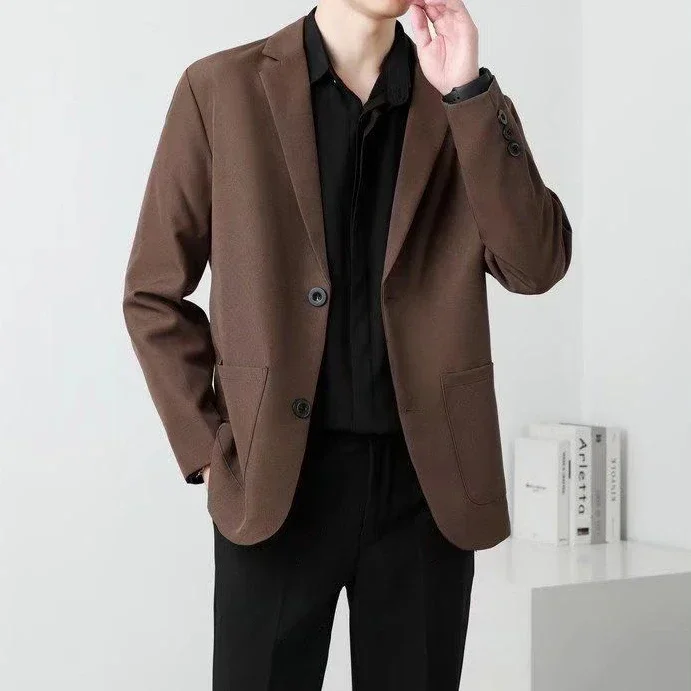 Brown Oversize Plus Big Size Jacket for Men Long Man Suits and Blazers Coats Fashionable Fashion 2025 New in Simple Breasted