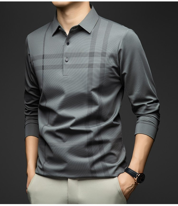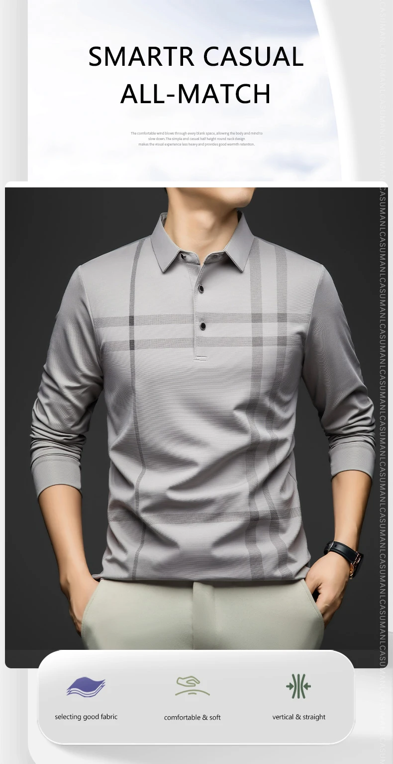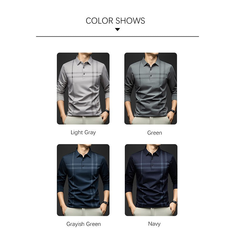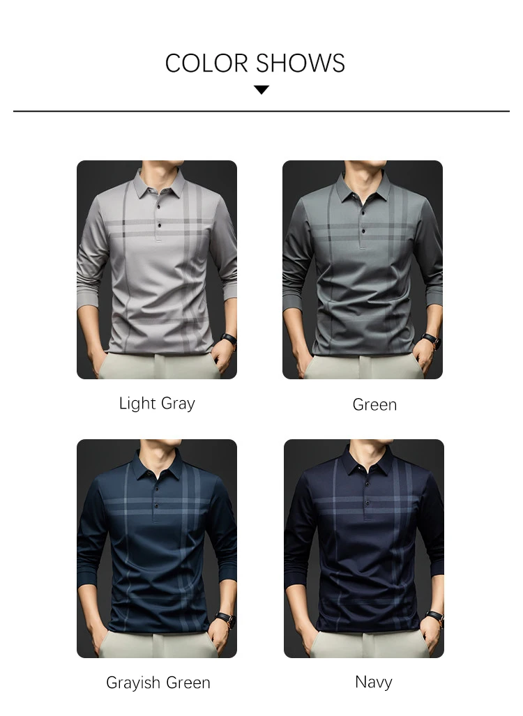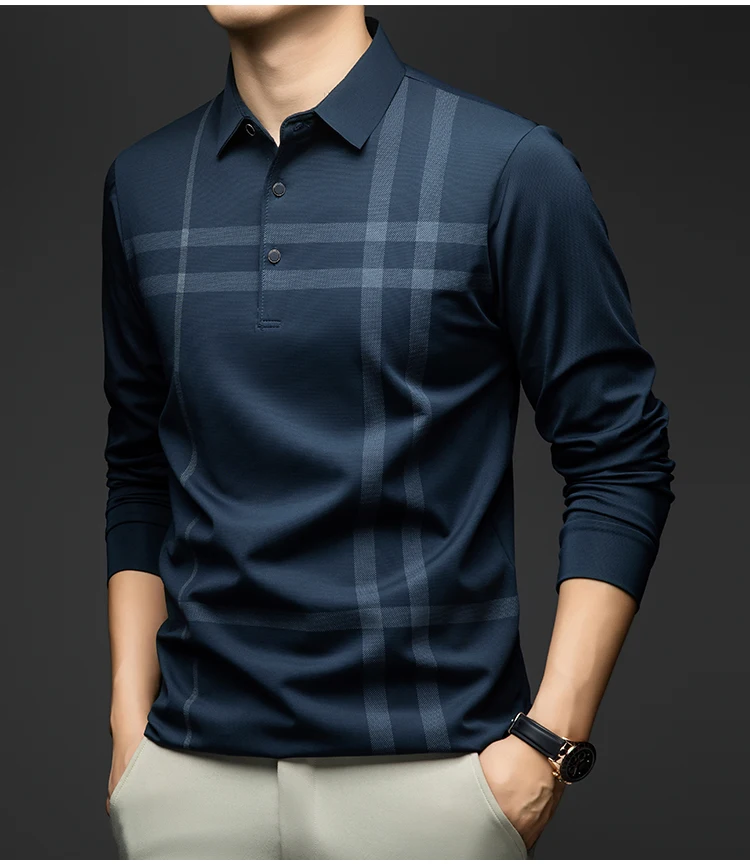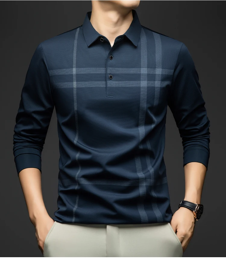 BROWON Graphic Polo Shirt Men 2025 Autumn New Business Slim Long Sleeve T Shirt Man Casual Loose Printed Striped Clothes for Men