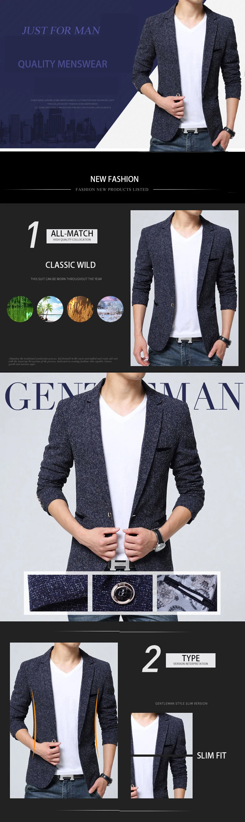 BROWON New Arrival Mens Blazer Jacket Suit Wedding Prom Party Slim Fit Smart Casual Suit Men Jacket Business Men Suit Jacket