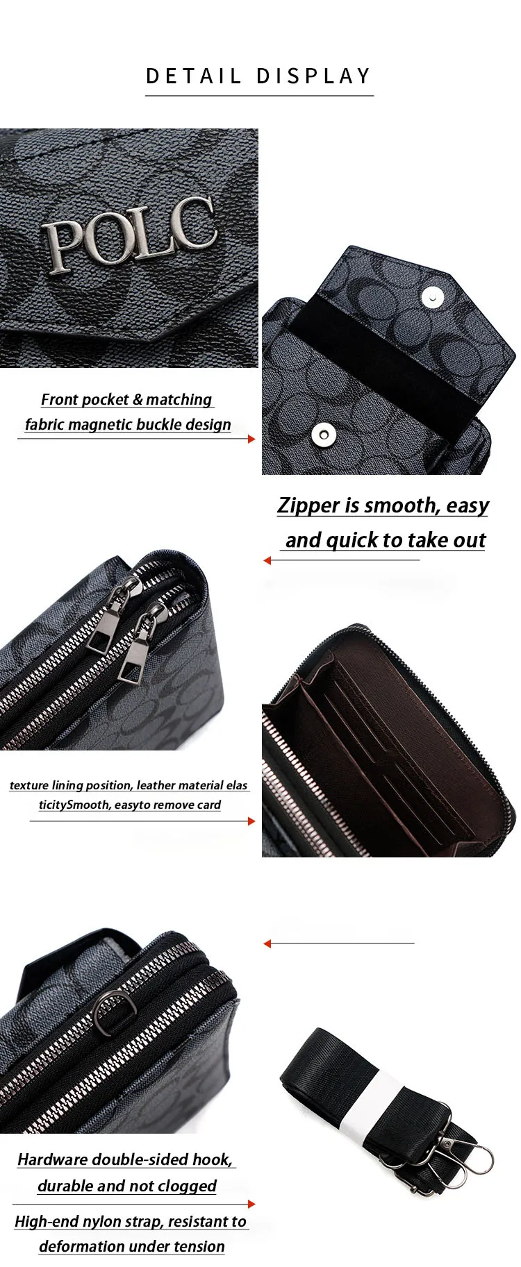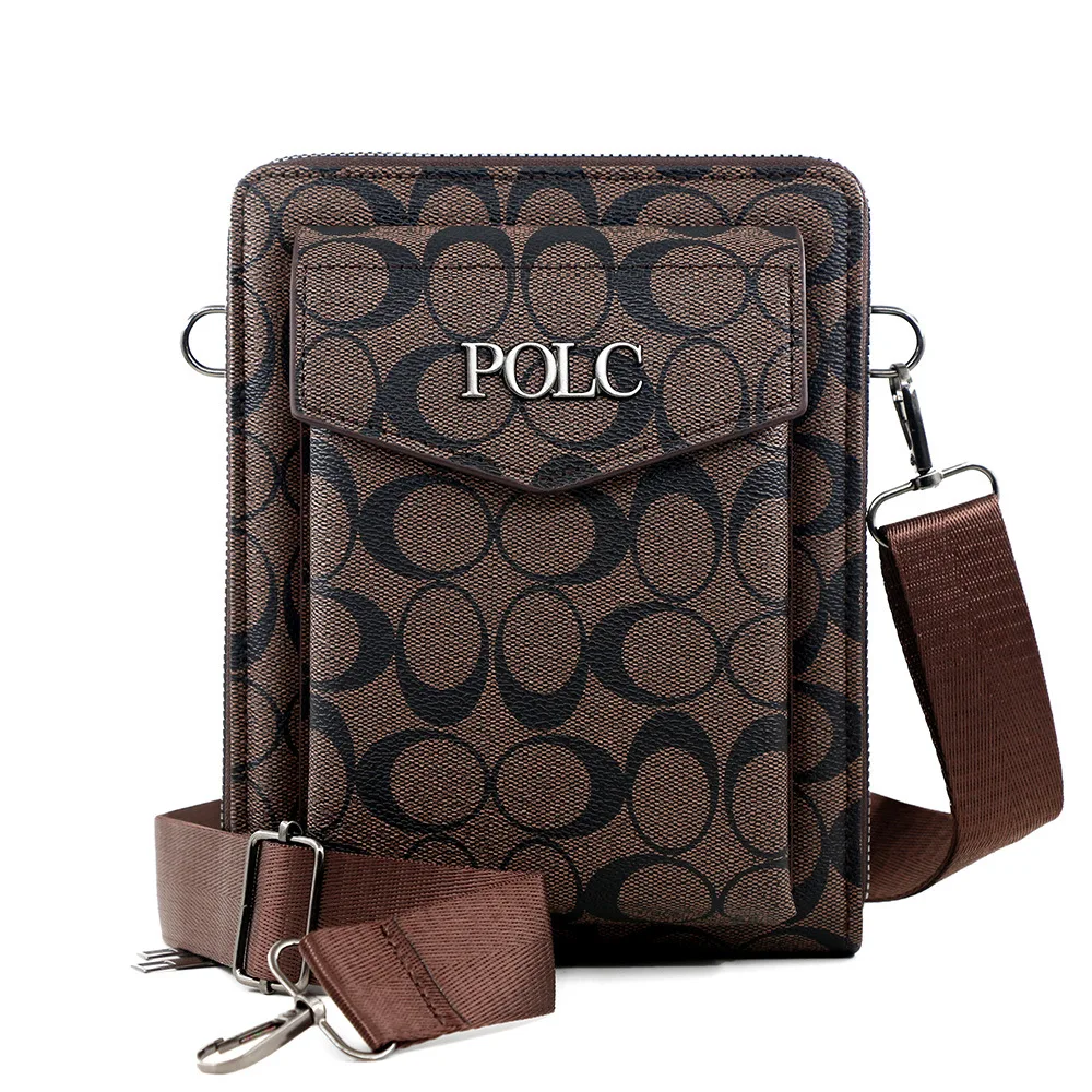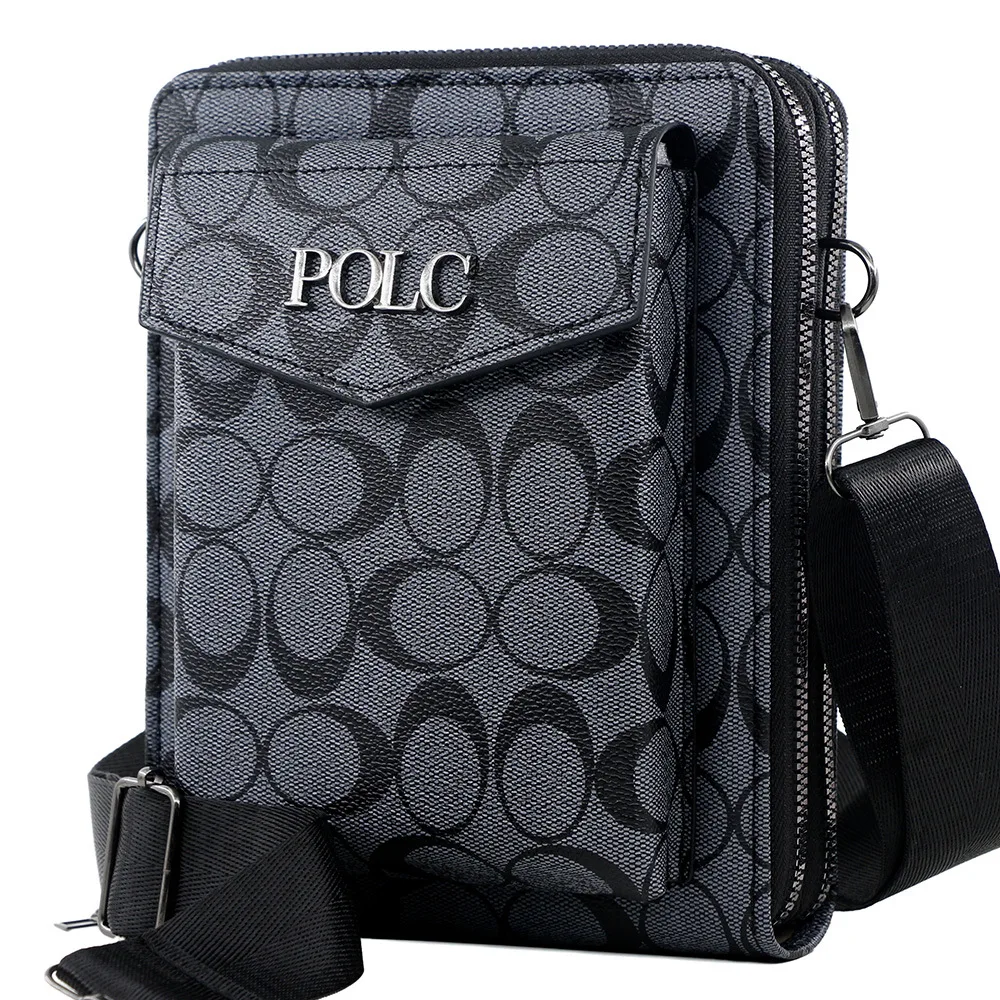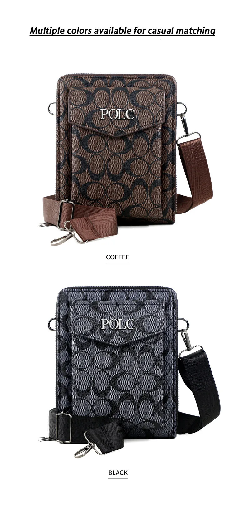 Business men's printed crossbody bag, shoulder bag, double zipper, large capacity ID bag, mobile phone bag, hanging bag
