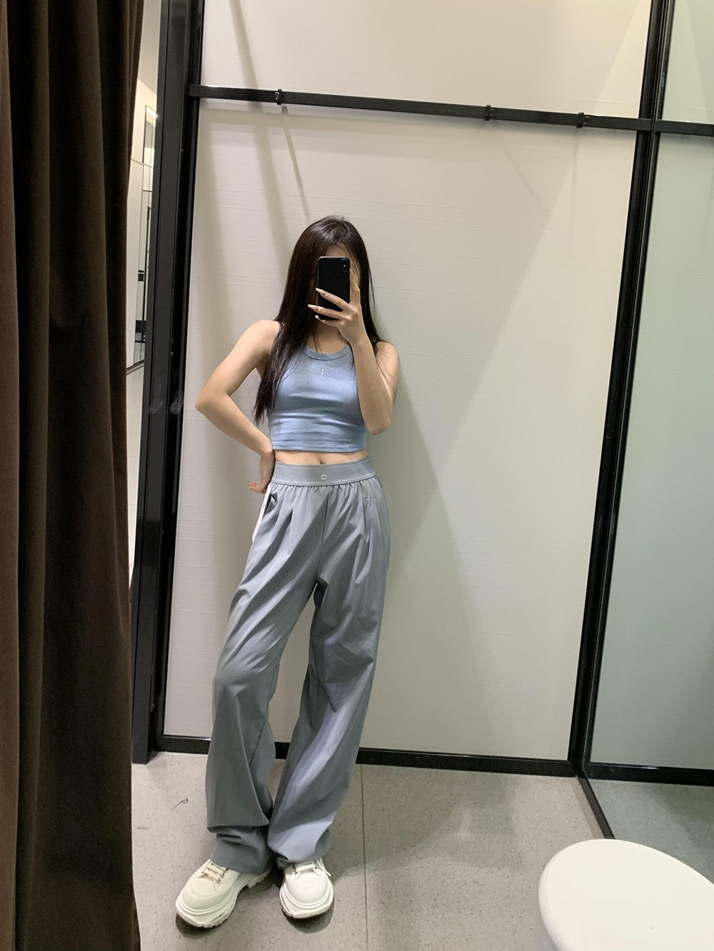 Calças retas femininas de secagem rápida calças de moletom de perna larga preto azul sólido fitness yoga esportes corredores