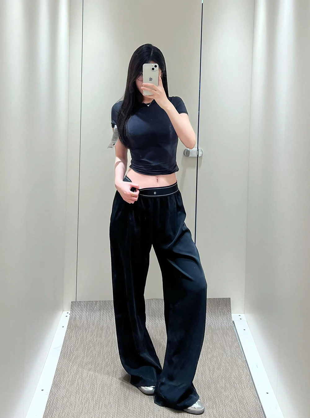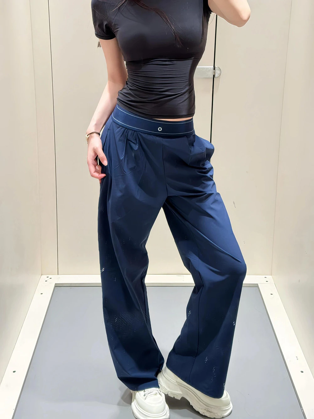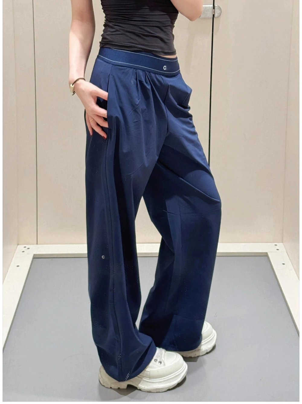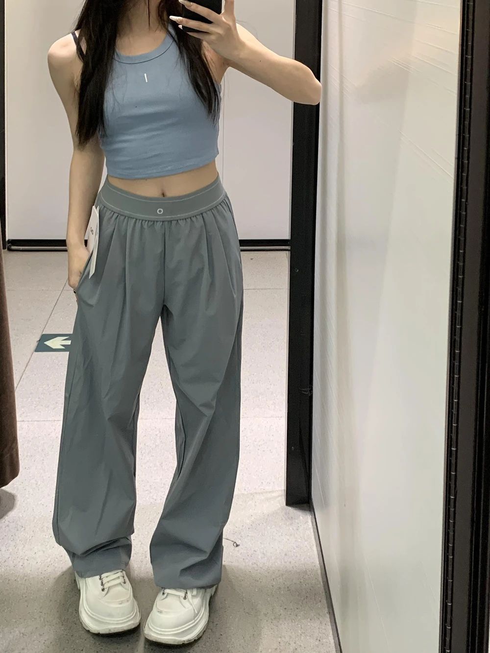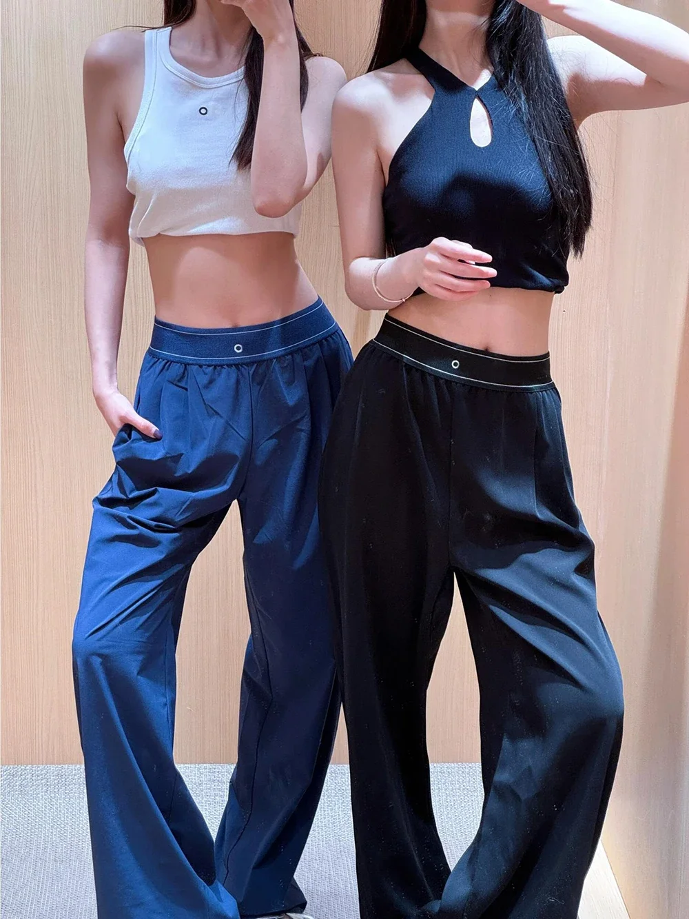 Calças retas femininas de secagem rápida calças de moletom de perna larga preto azul sólido fitness yoga esportes corredores