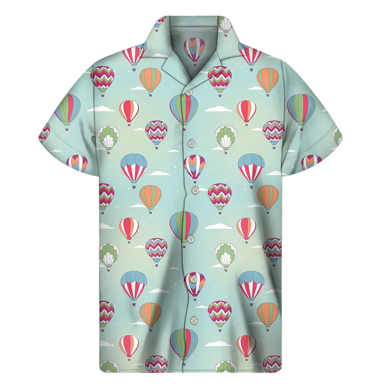 Cartoon Air Balloon 3D Print Hawaiian Shirt Men Summer Cool Lapel Shirts Fashion Short Sleeve Tops Oversized Button Blouse