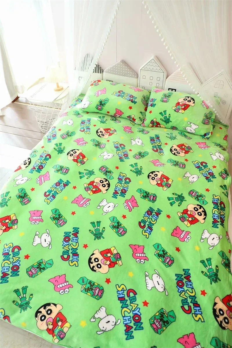 Cartoon Crayon Shinchan Flannel Blanket Single Size Sleeping Blanket Comfort Japanese Style Blanket Bedroom Bedspread Girl Kids