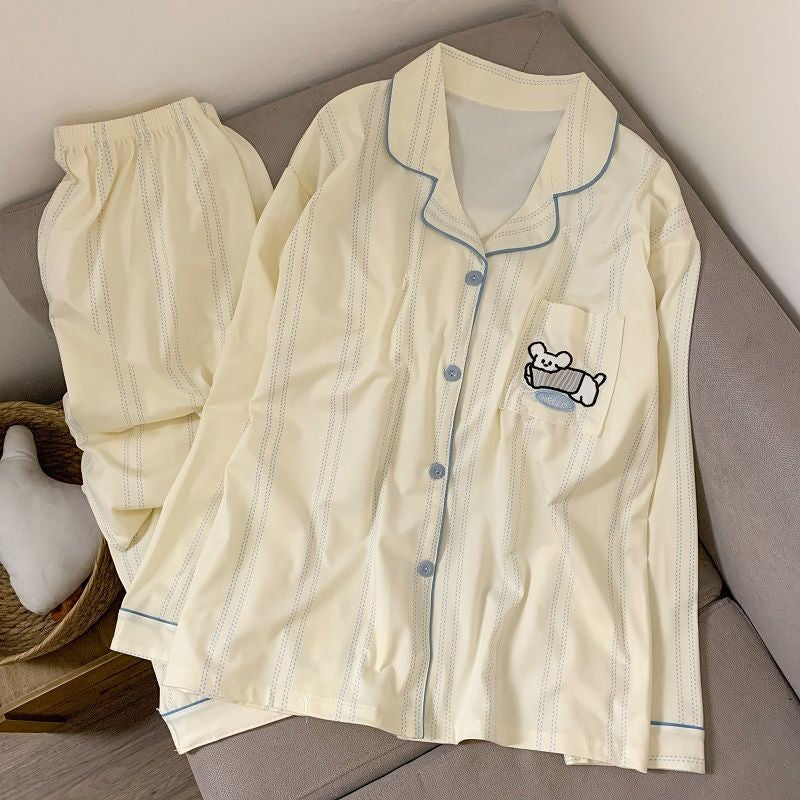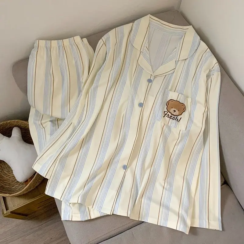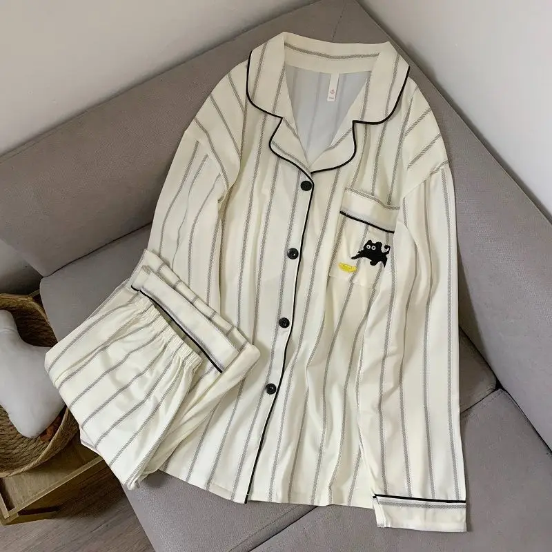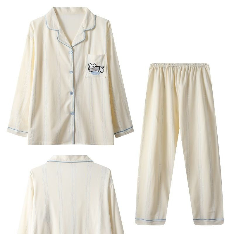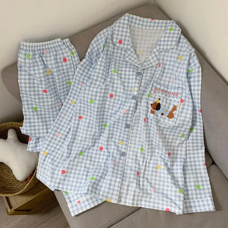 Cartoon Dog Letter Plaid Print Pajama Sets for Women Plus Size Sweet Cute Harajuku Style 2PC Set Sleepwear Autumn New Homewear