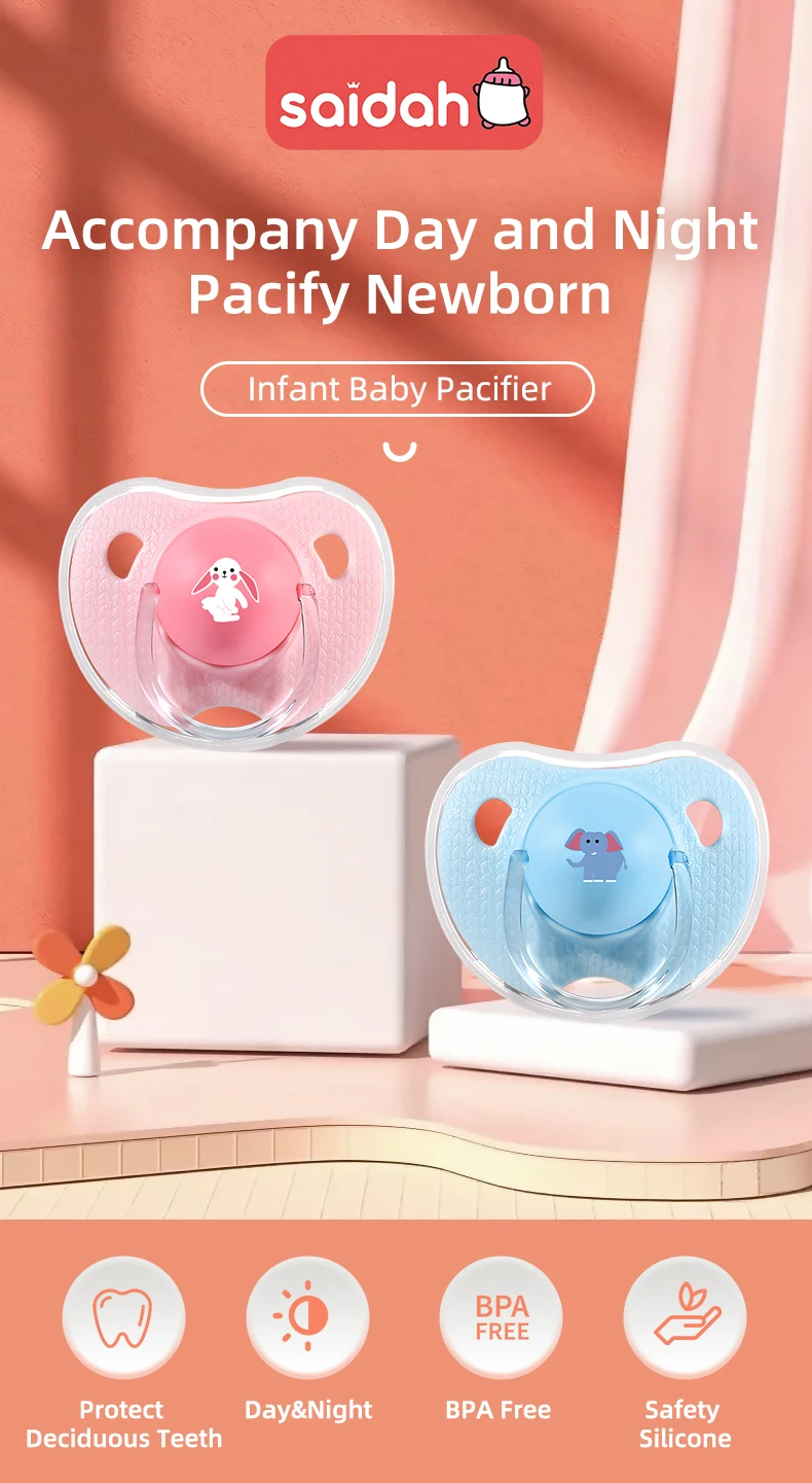 Baby Pacifier Cartoon Pattern Thumb Shape Toddlers Soothe Kids Newborn Baby Silicone Teething Pacifier |
