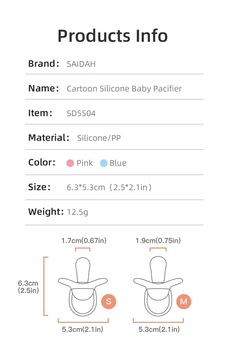 Cartoon Pattern Thumb Shape Toddlers Soothe Kids Newborn Baby Silicone Teething Pacifier