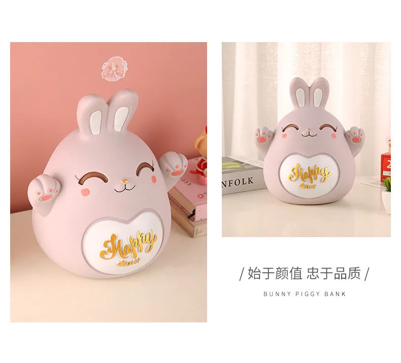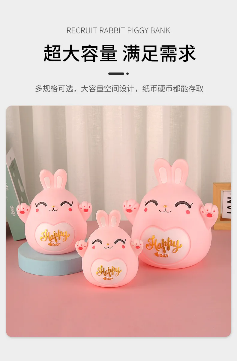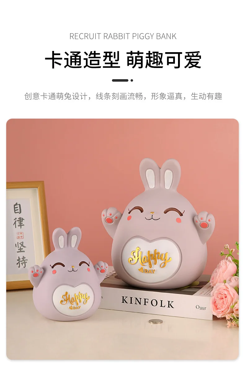 Cartoon Rabbit Piggy Bank Home Living Room Bedroom Ornament Children's Gift Vinyl Anti-fall Piggy Bank Home Accessories