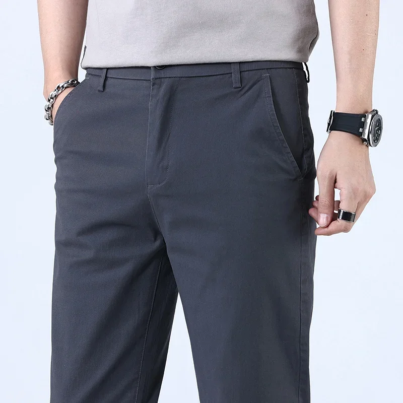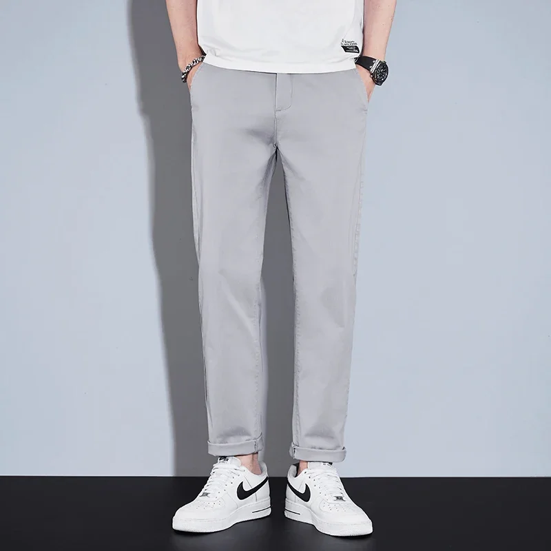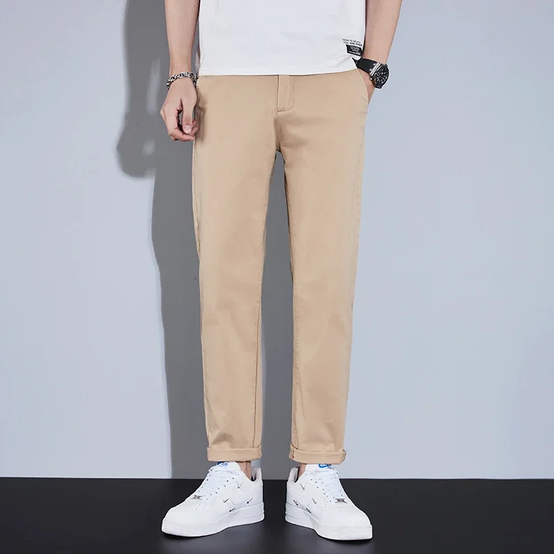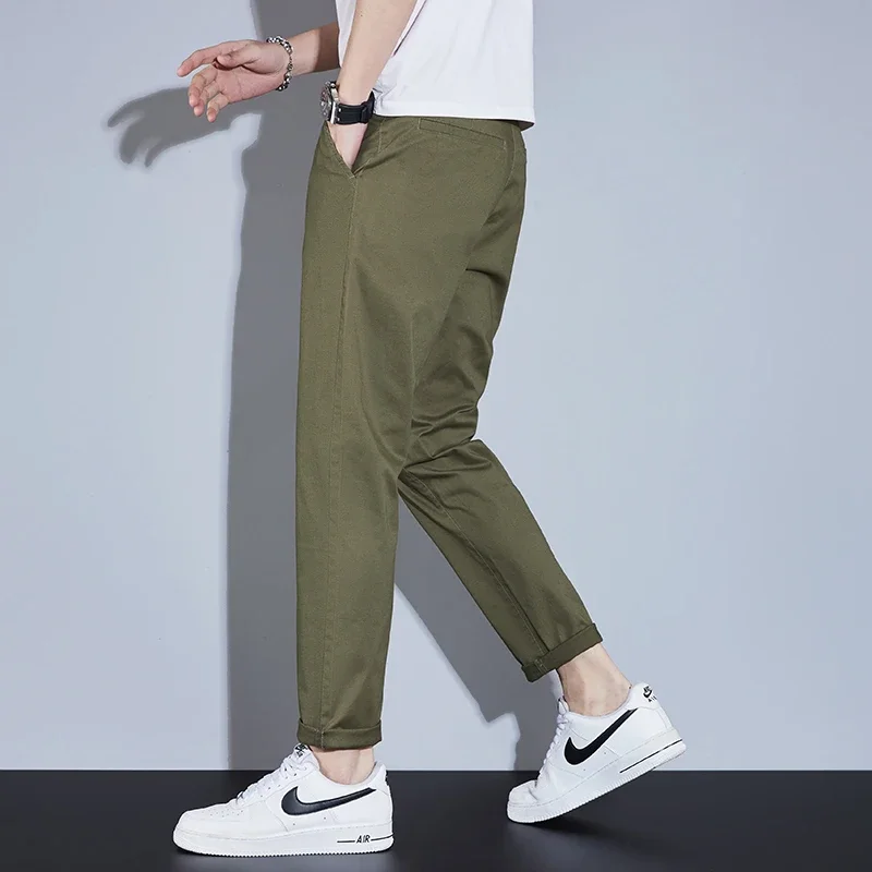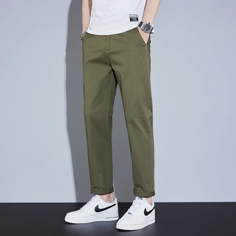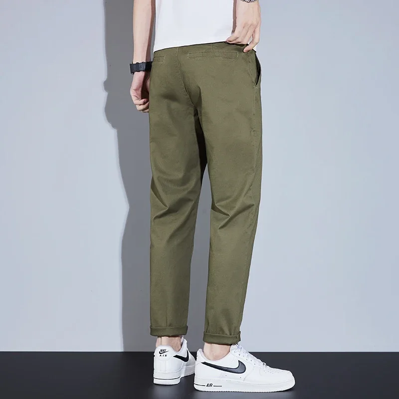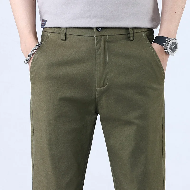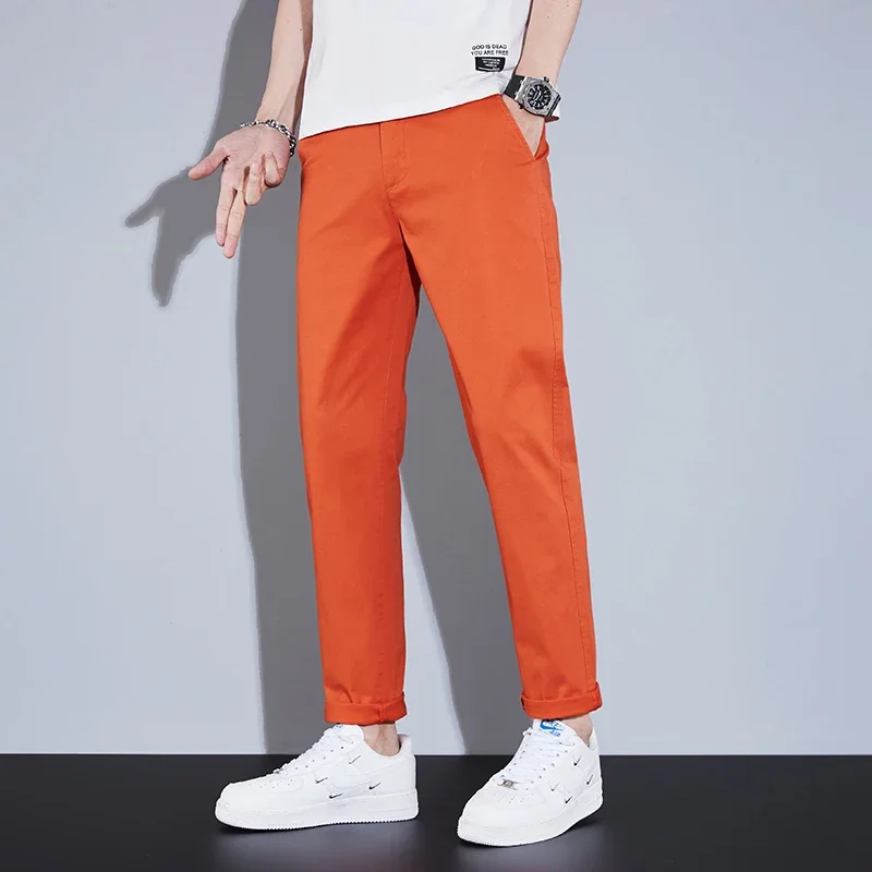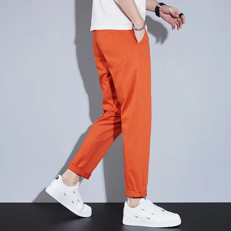 Casual Men Orange Loose Straight Business Pants Green Khaki Elastic Waist Trousers Soft Cotton Lyocell Fabric Korean Cargo Pants