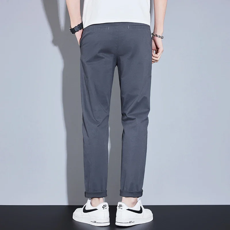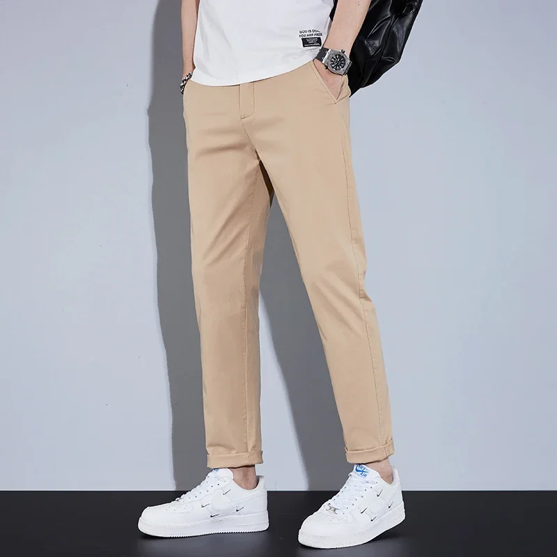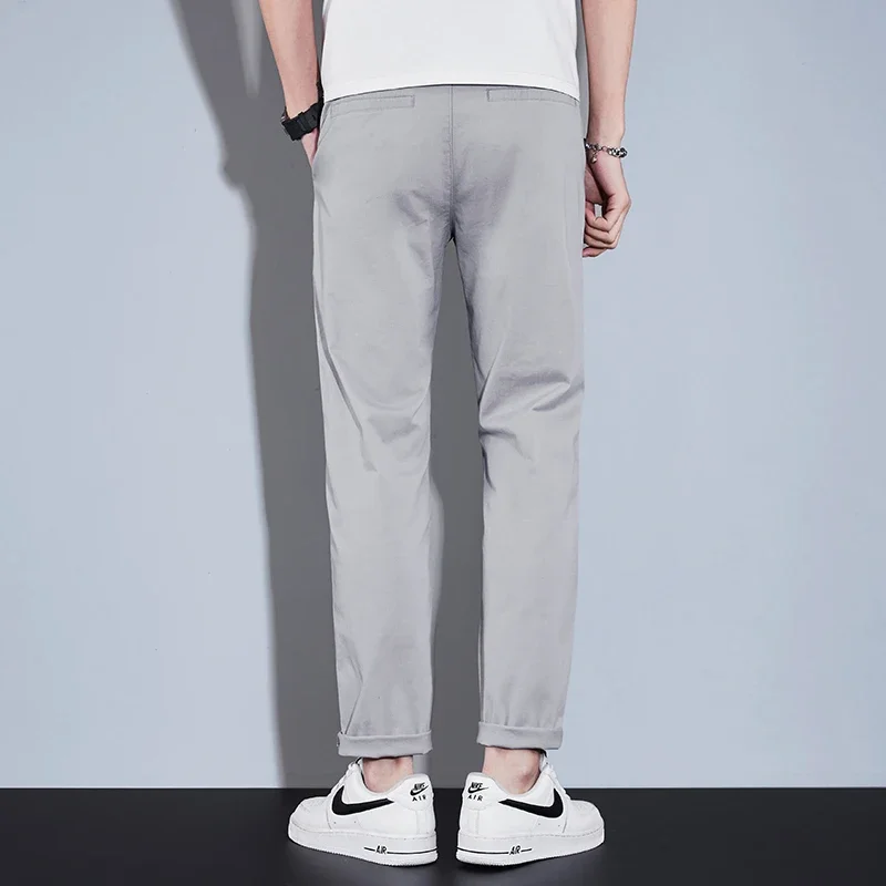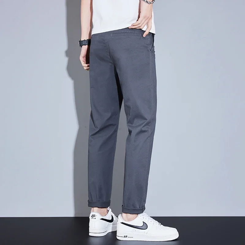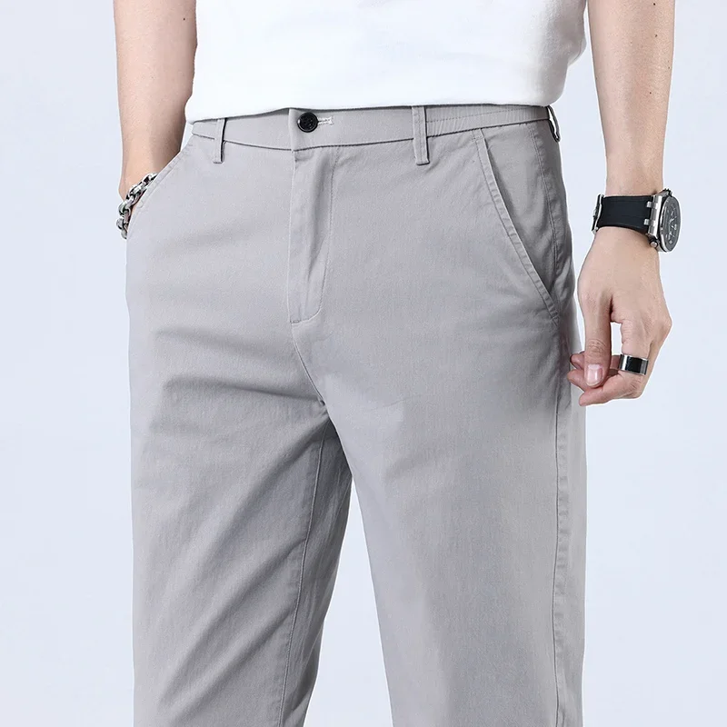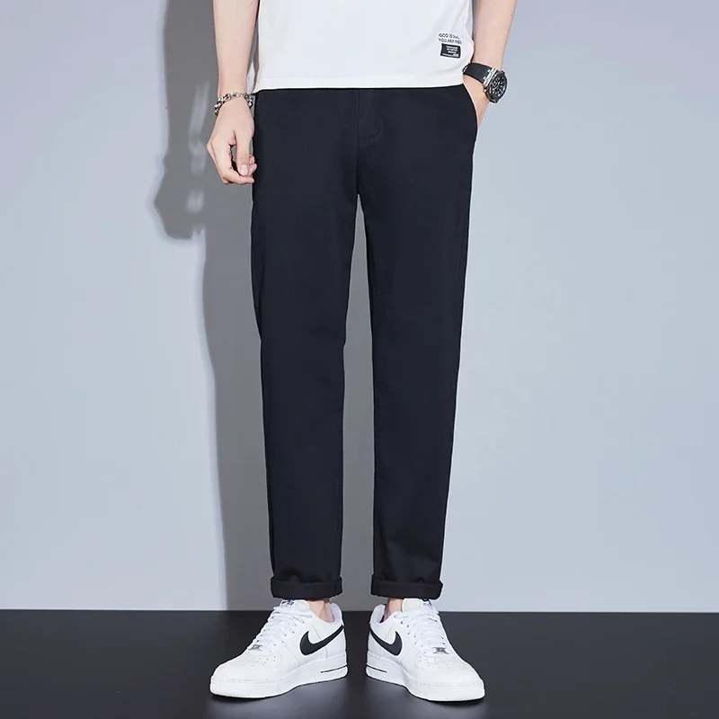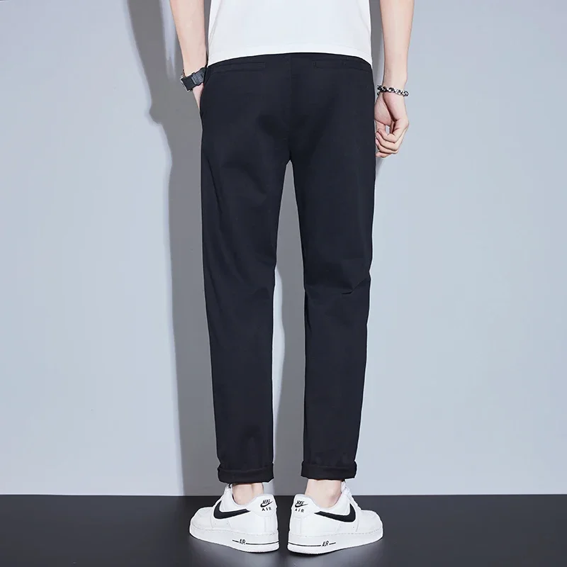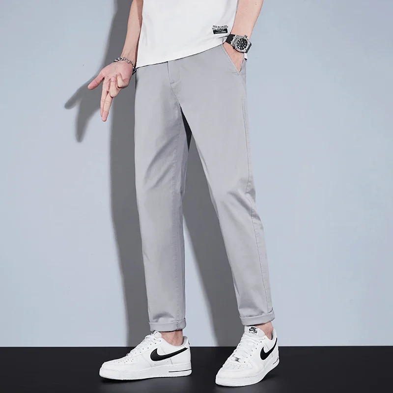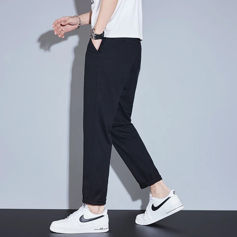 Casual Men Orange Loose Straight Business Pants Green Khaki Elastic Waist Trousers Soft Cotton Lyocell Fabric Korean Cargo Pants