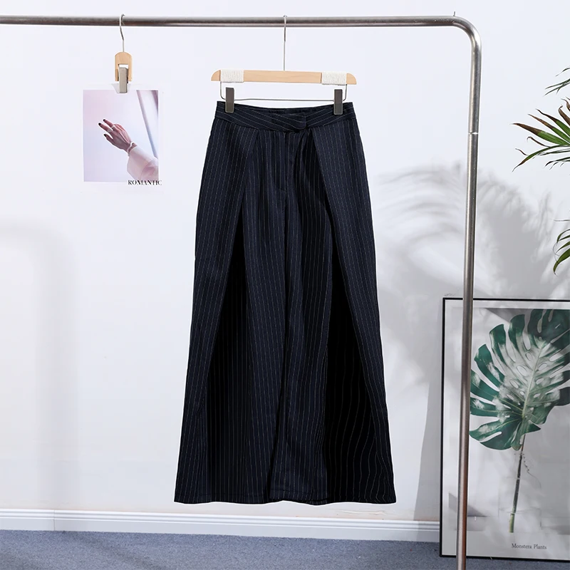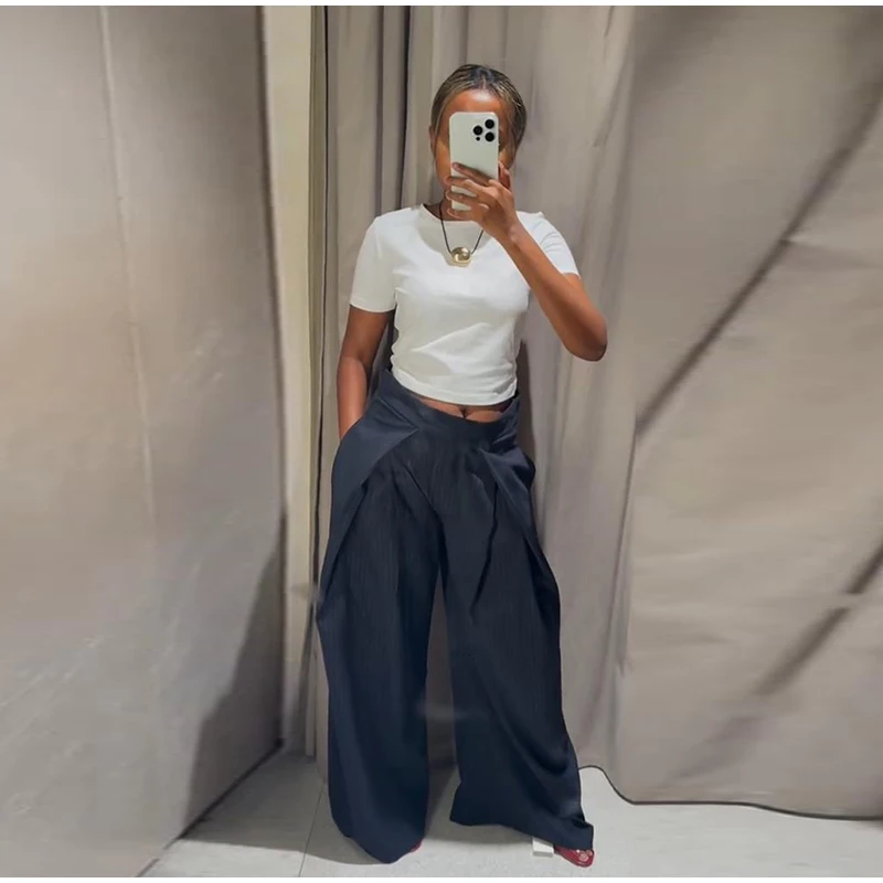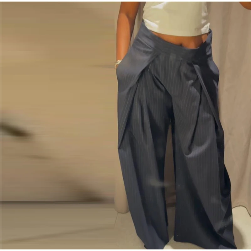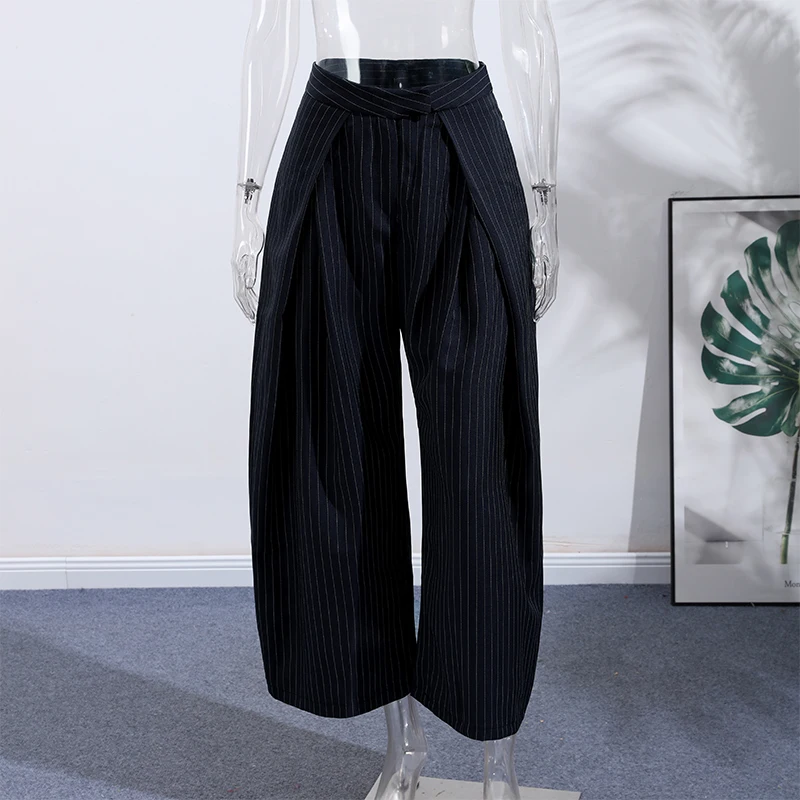 Casual Striped Loose Pants Women High Waist Pleated Straight Long Wide Leg Trousers Female 2025 Fashion Autumn Lady Bottoms