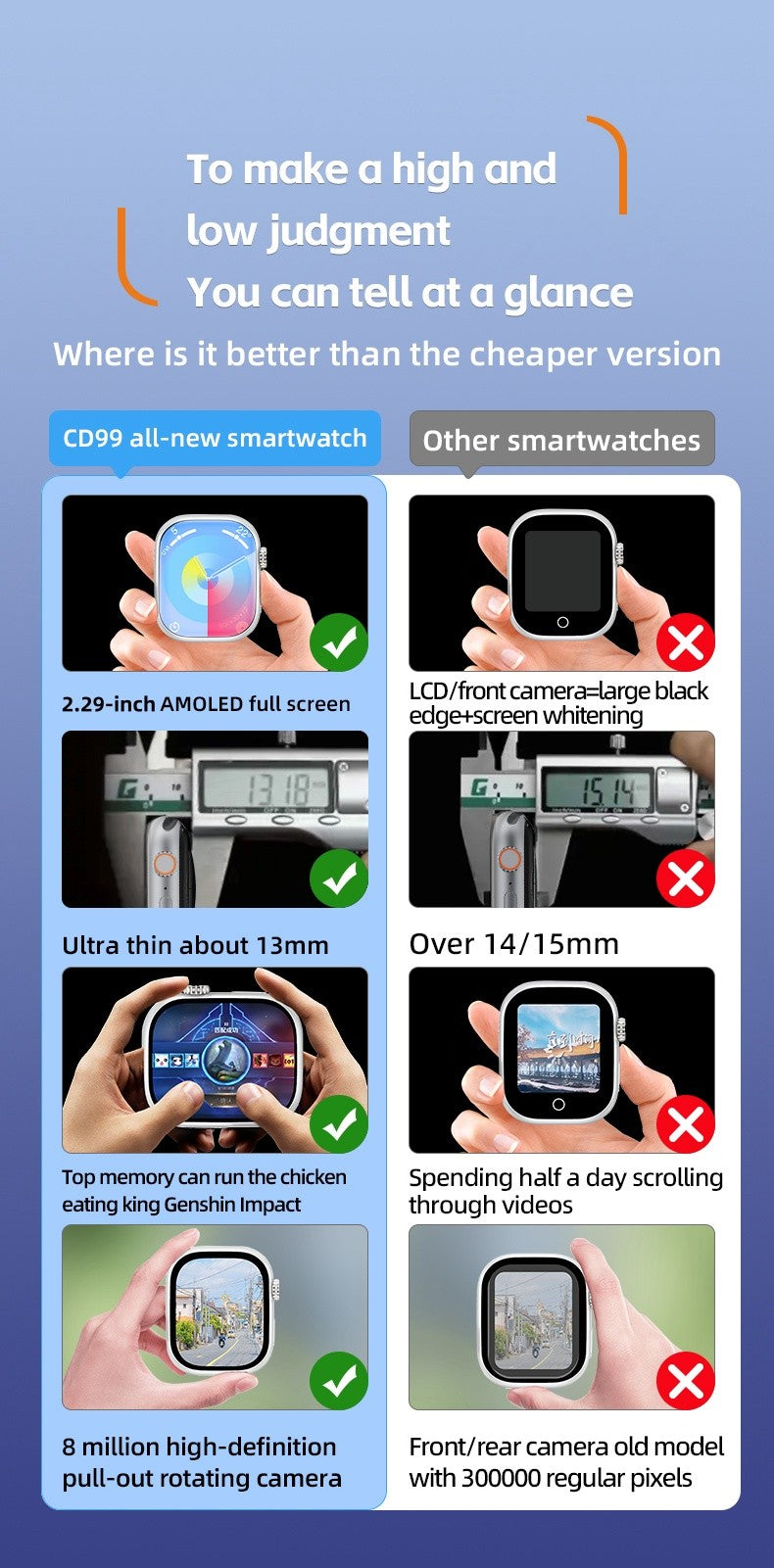 CD99 watch X 5G smartwatch 2.29inch AMOLED 5G LTE smart watch with 180 ° rotary camera GPS WiFi SIM card slot health monitoring