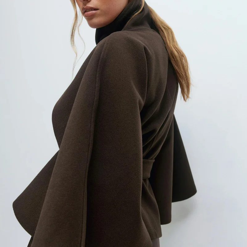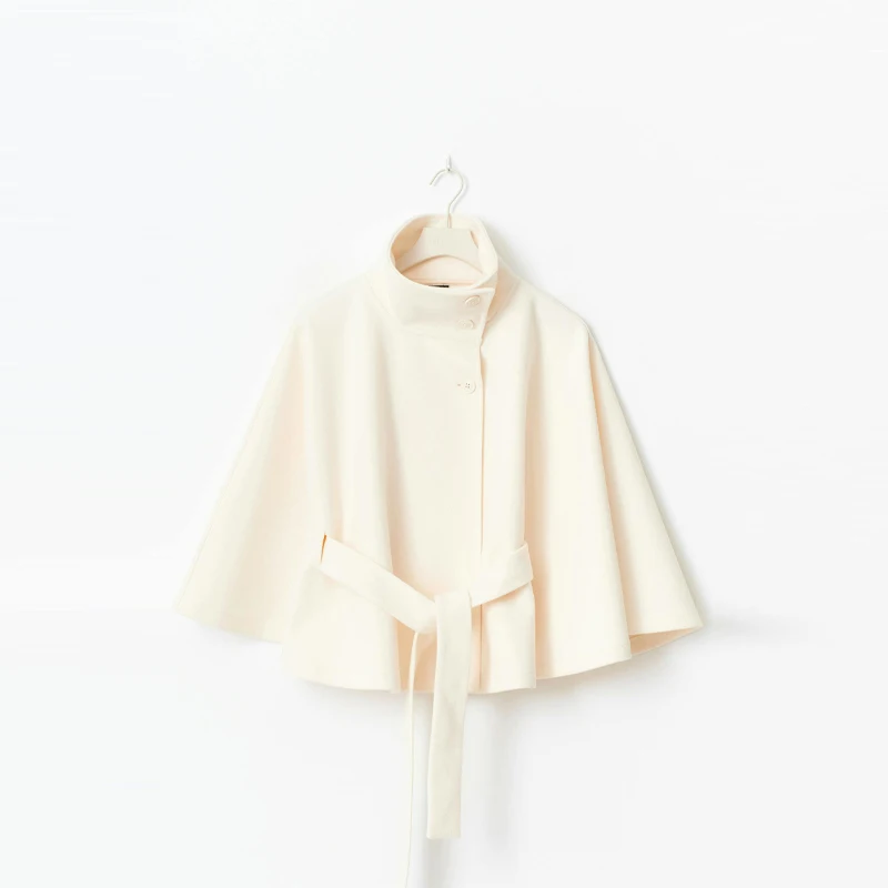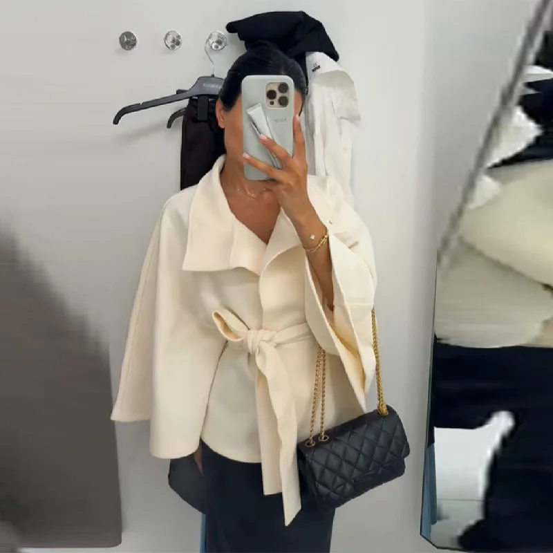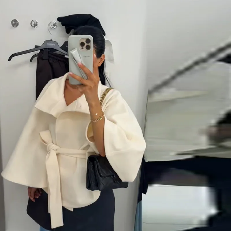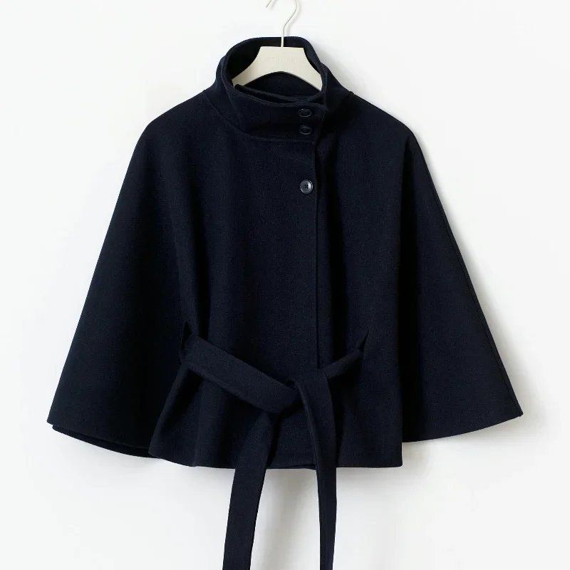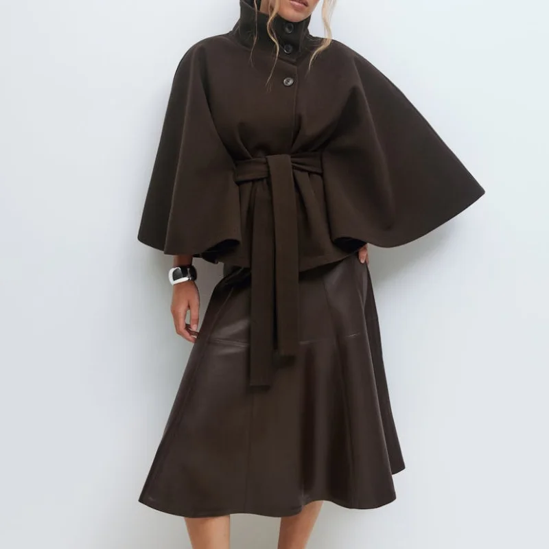 chic vintage cape jacket with belt stand neck single breasted loose coat loose flare sleeve coats early lady autumn Y2K outwears