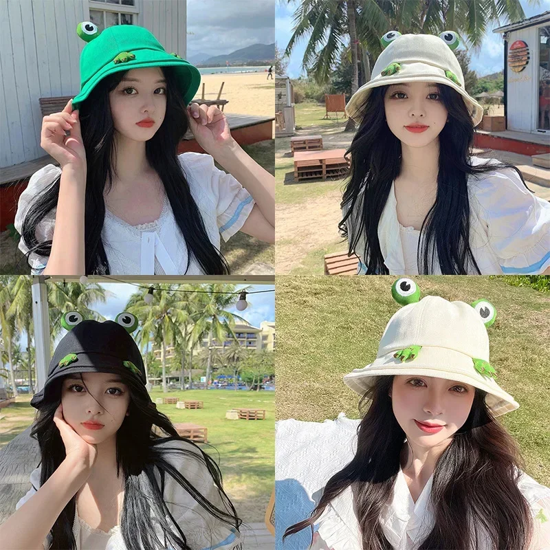 Children Frog Bucket Hat With Ear Panama Fisherman Hats For Men Women Kids Cartoon Cute Summer Outdoor Travel Sun Bob Cap