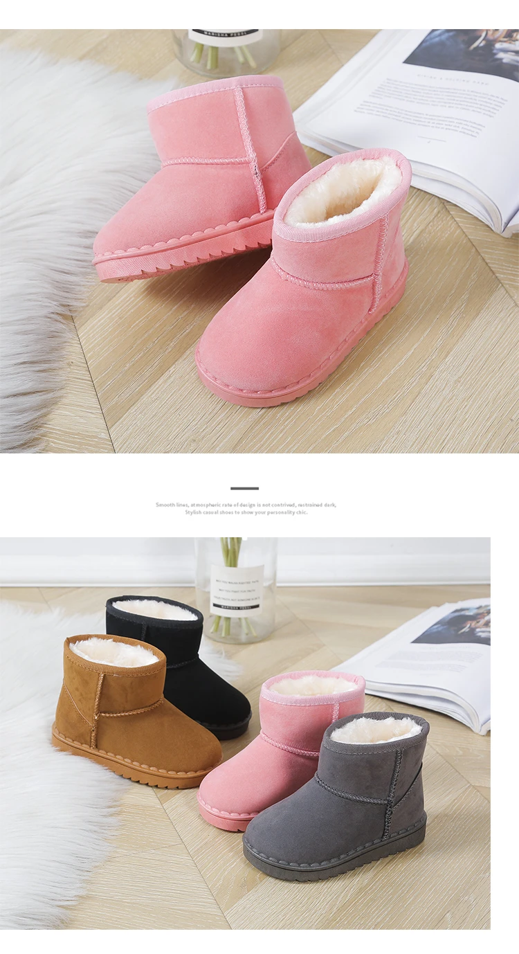 Children Snow Boots for Boys Girls Little Toddler Kids Thermal Boots Ankle Warm Classic Suede Flock Fabric Fashion Autumn Winter