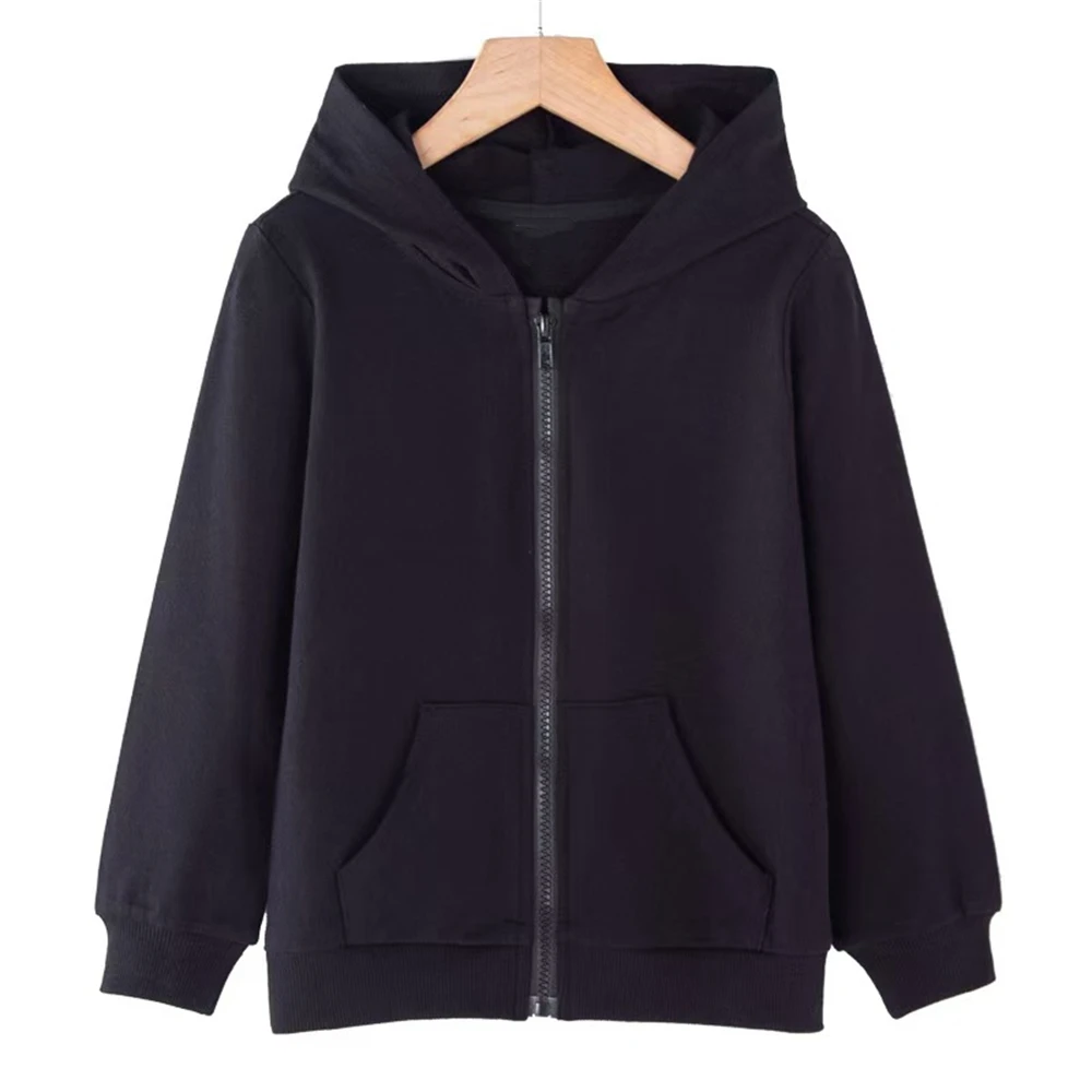 Children tops Zipper style Hoodies Coat Boy black Girls Pink Age 3-12 Kids Sweatshirt festival festival gifts Solid color