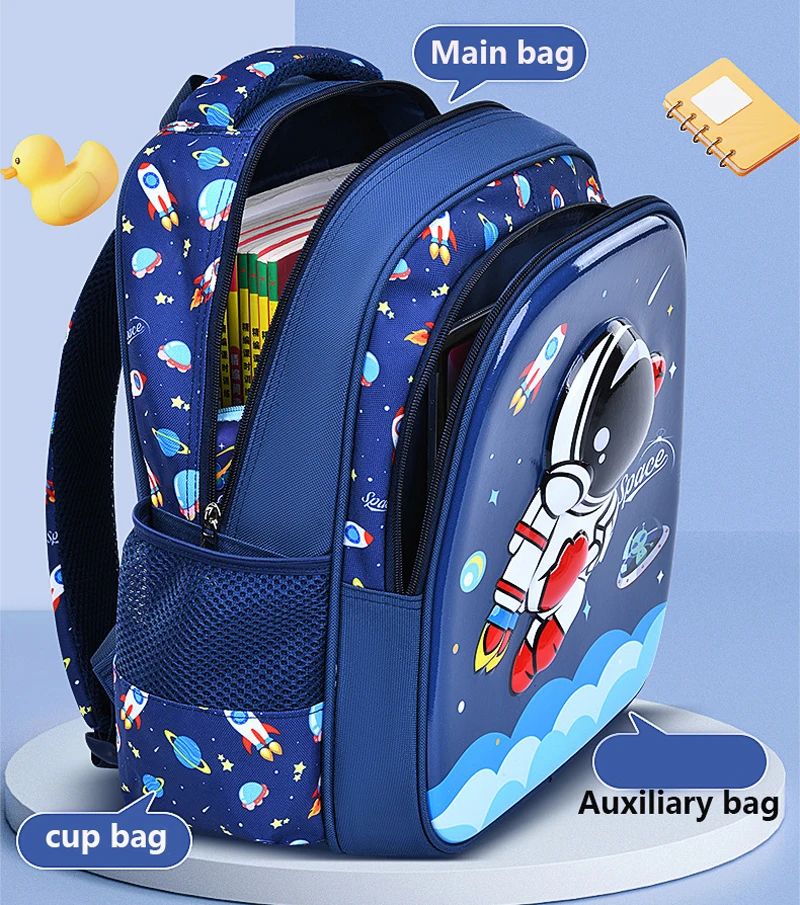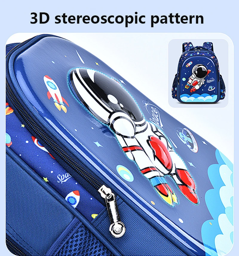 Children's Shoulder Bag Cartoon 3D Stereoscopic Astronaut Schoolbag Waterproof Kid Backpack Little Boy Dream Elementary School