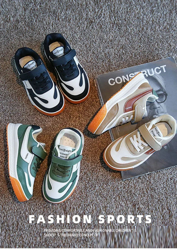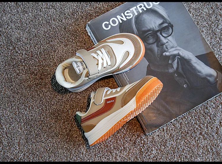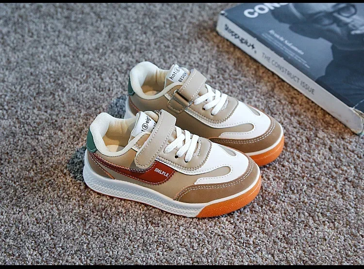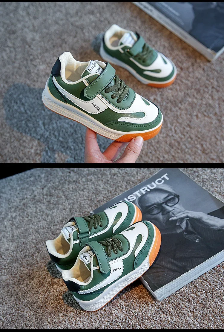 Children's Spring New Leather Upper Sneakers Middle Large Children's Casual Shoes Boys and Girls Soft Sole Students Tennis Shoes