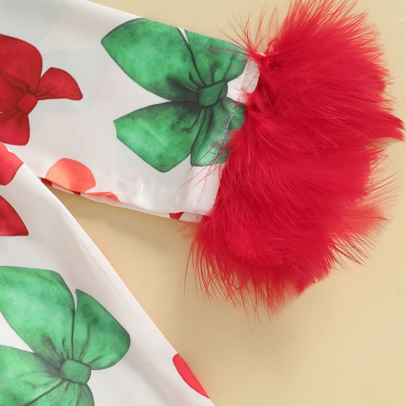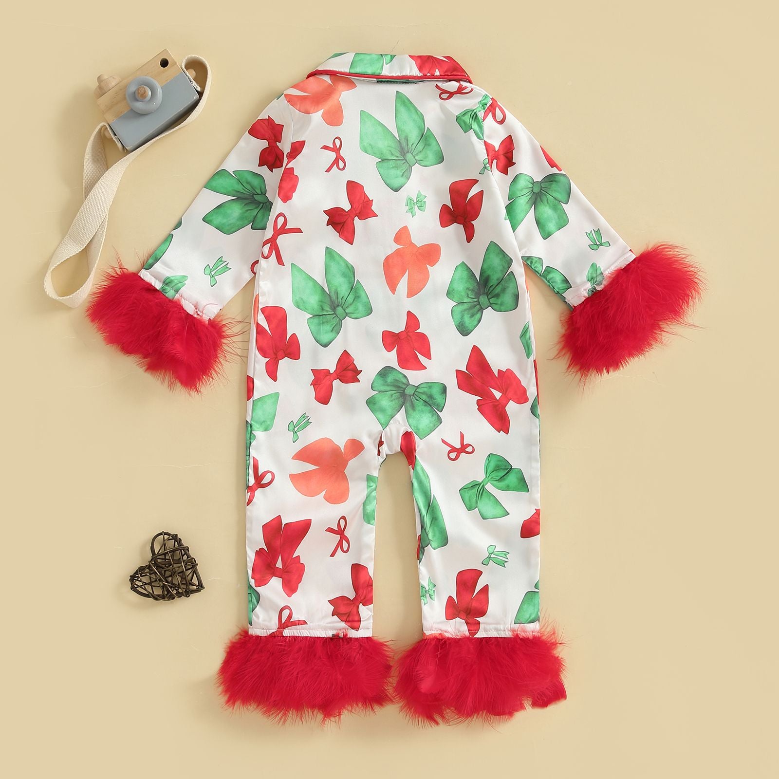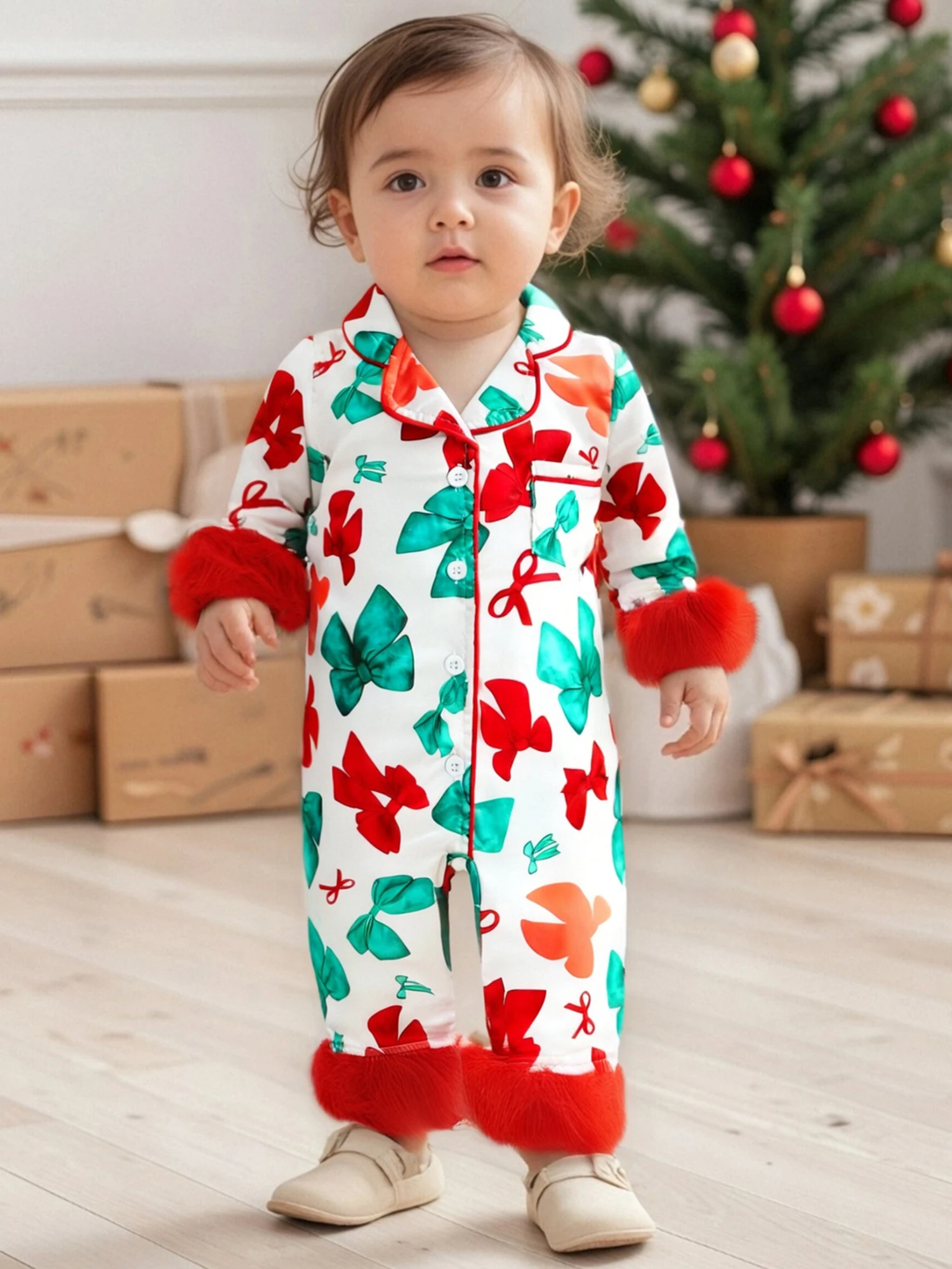 Baby Girls Jumpsuit, Long Sleeve Bow Print Button Closure Patchwork Casual Romper Clothes