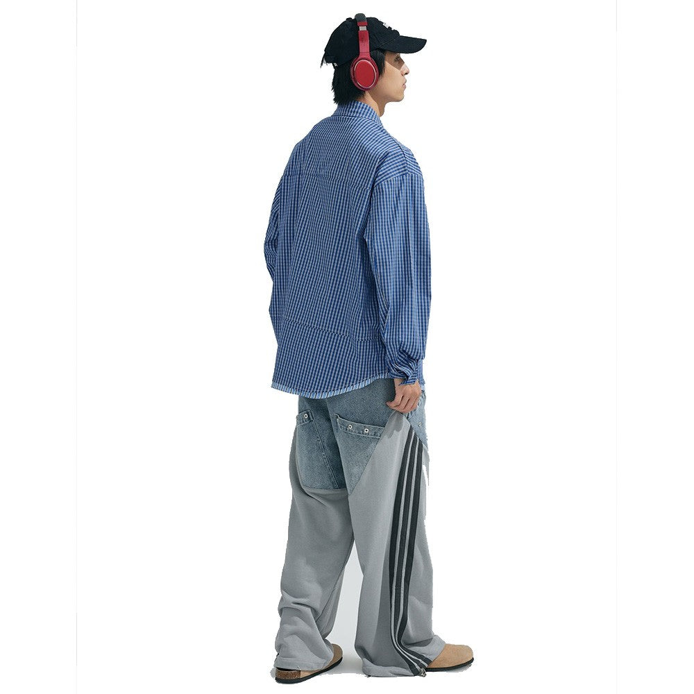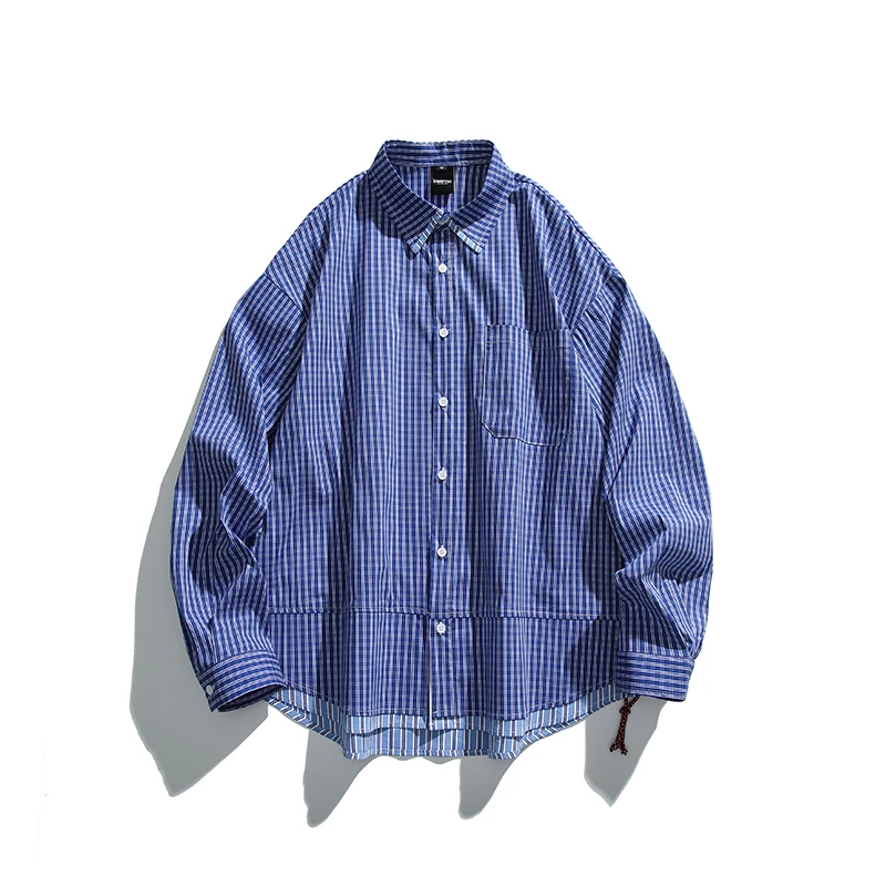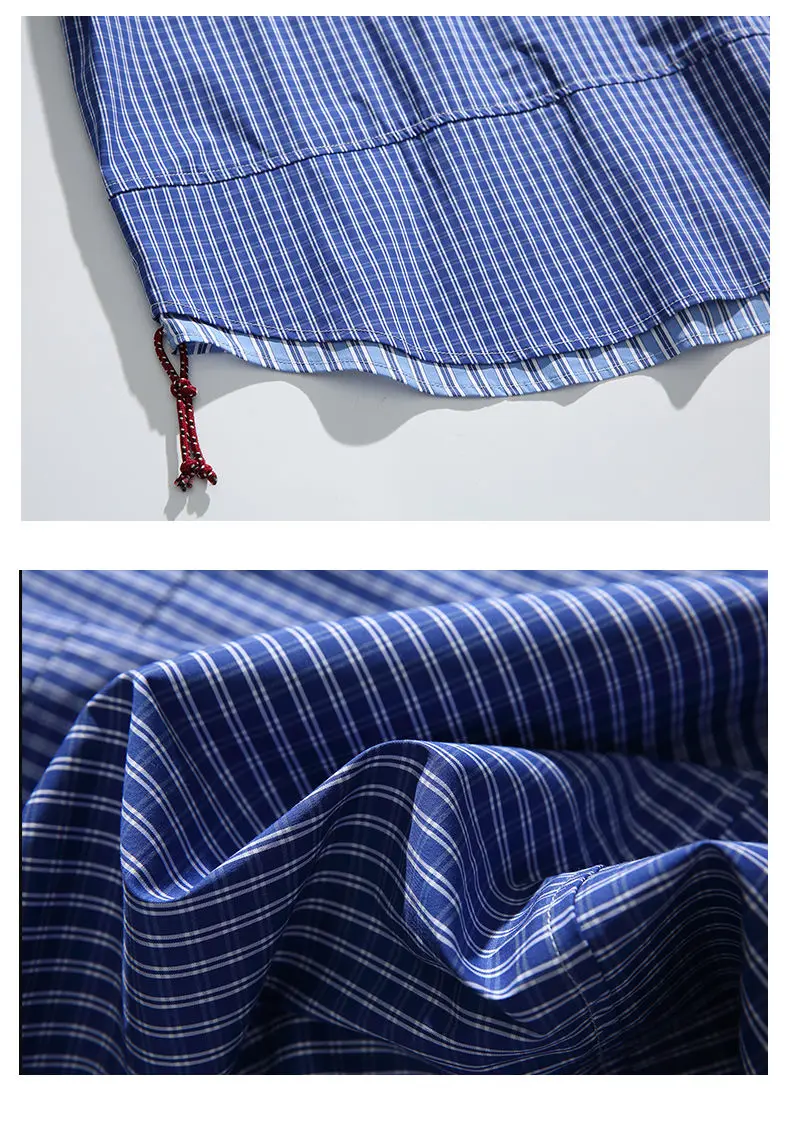 Cityboy Oversize Cargo Shirt Men Japanese Streetwear Fashion Loose Casual Plaid Splice Stripe Long Sleeve Shirts Blouses