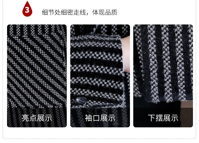 Classic Autumn Winter Men's Mid-Length Woolen Coats Casual Striped Overcoat Outwear Windbreaker Business Warm Long Jackets