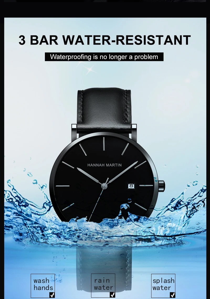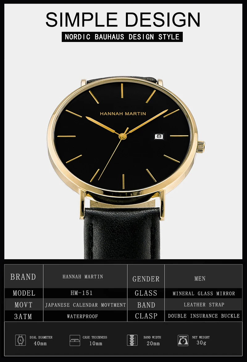 Classic Bauhaus Design Men Watch Dark Blue Japan Quartz Waterproof Stainless Steel Fashion Business Calendar Ultra Thin Watches
