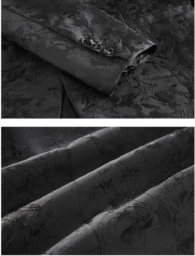 Classic Black Jacquard Suit Male Business Casual Coat Size 6XL-S Fashion Men Wedding Party Tuxedo Dress Blazers Slim Fit Tops