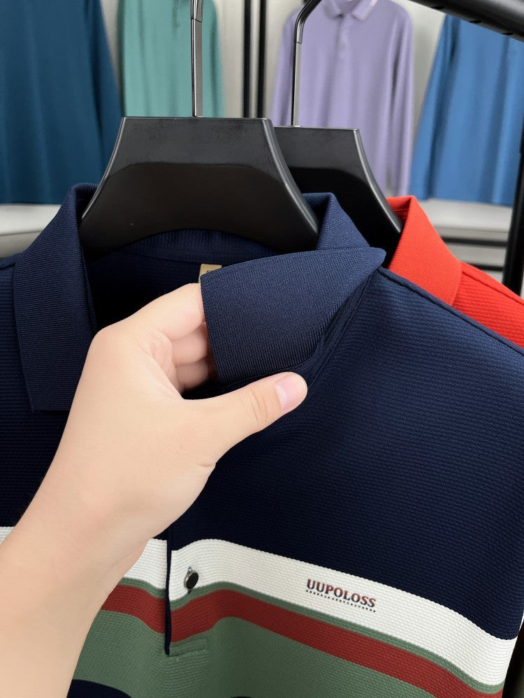 Classic fashion striped long sleeve polo shirt men's luxury brand letter printed business casual spring autumn new lapel T-shirt