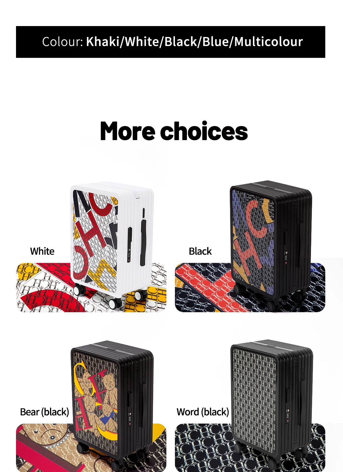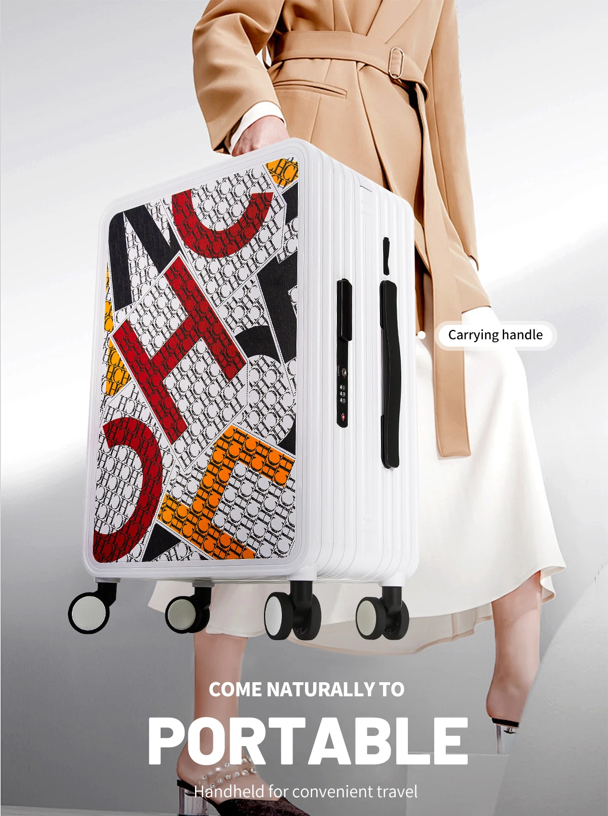 Classic Fashion Unisex New Roller Luggage Letter Design Large Capacity Business Travel Luggage