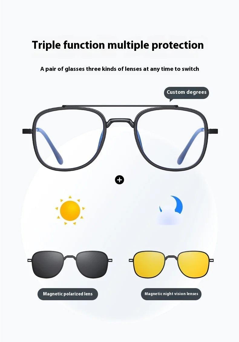 COHK Metal 3 In 1 New Style Folding Magnet Clip On Glasses Frame Trend Polarized Sunglasses Men Optical Computer Eyewear UV400