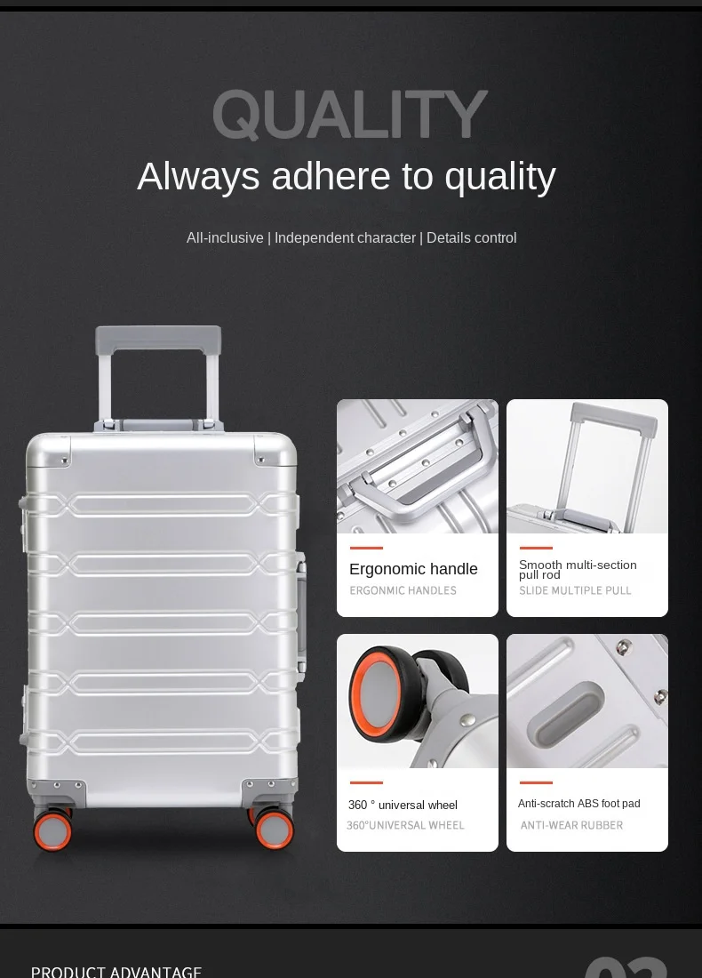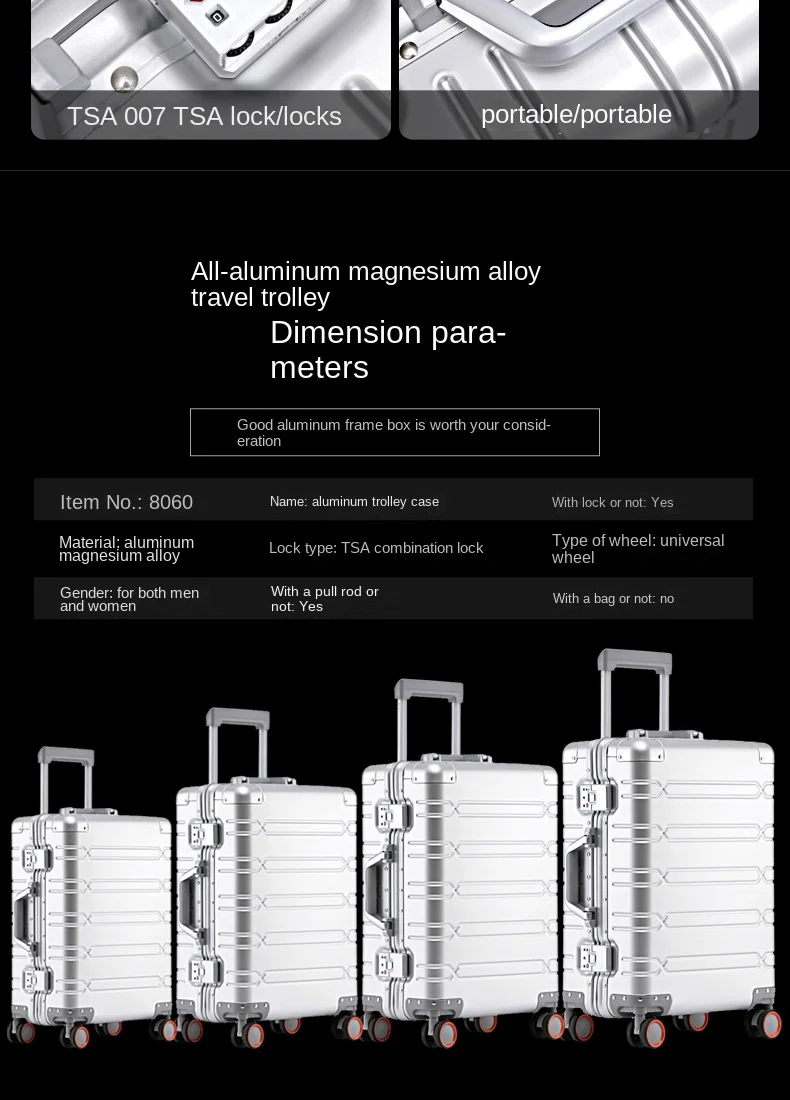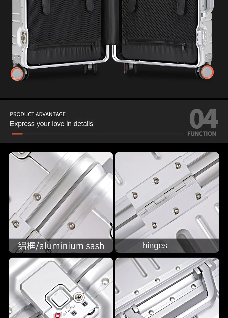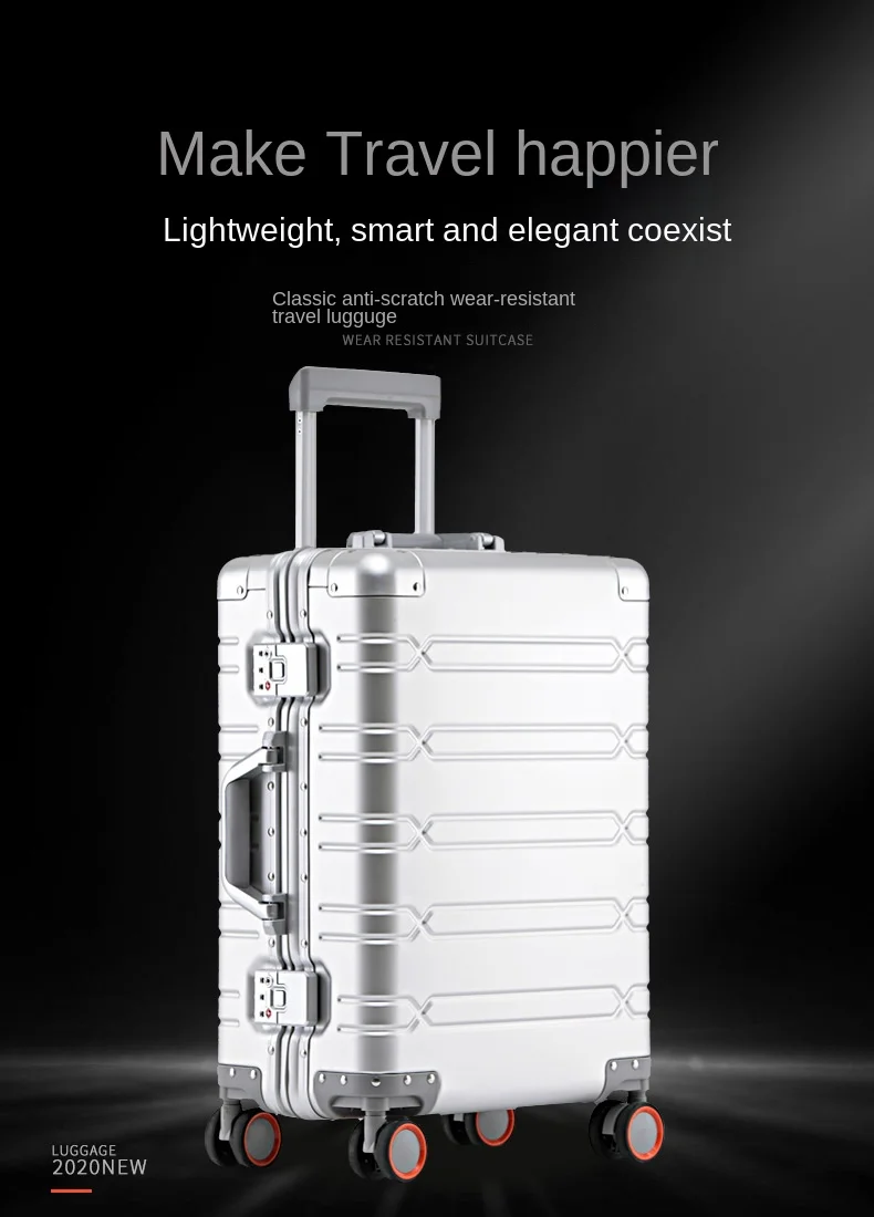 COLENARA 20"Luggage Travel Bag Full Aluminum Magnesium Alloy 24"29Inc Boarding Box Business Trolley Case Large Capacity Suitcase