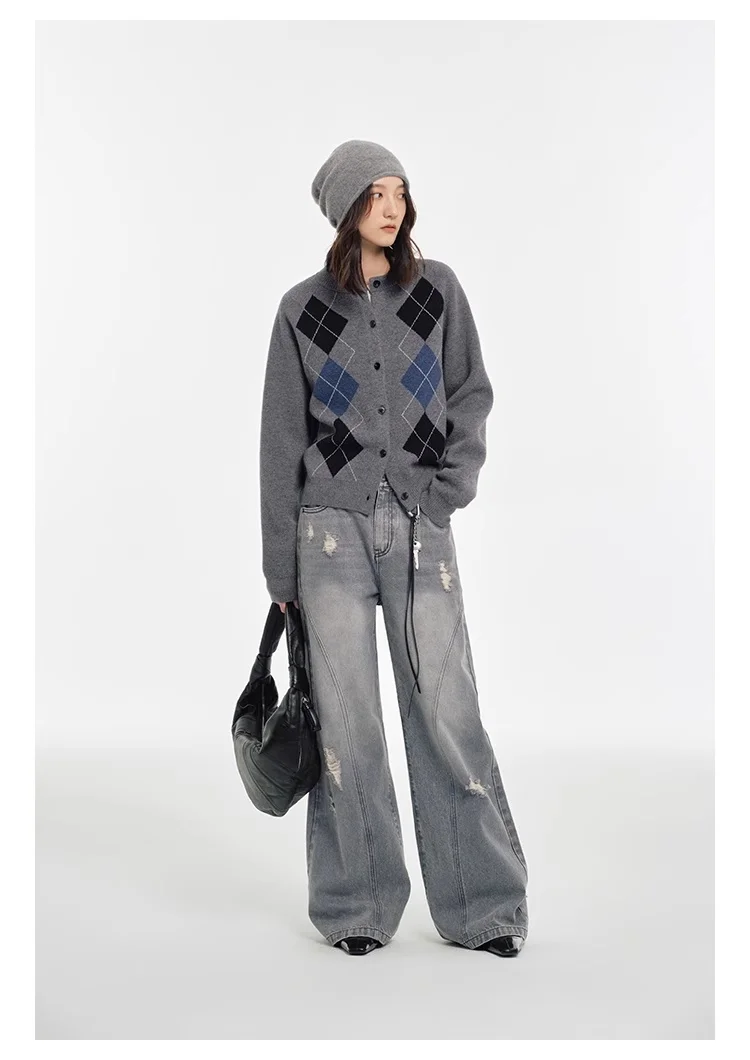 College style sweater 100% Australian Wool Sweaters Large Size Cardigan High-grade Women's Autumn Winter Fashion Knitwear