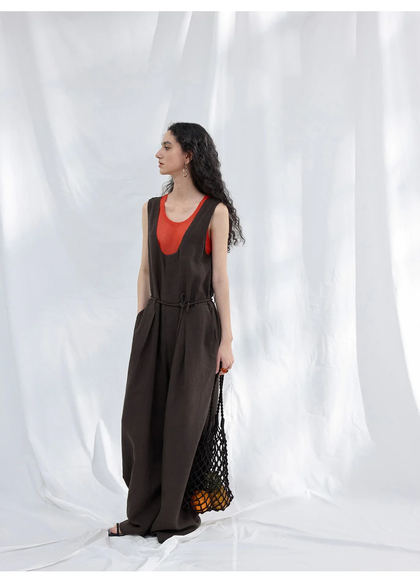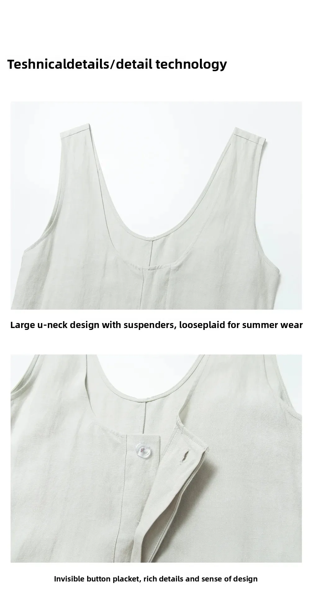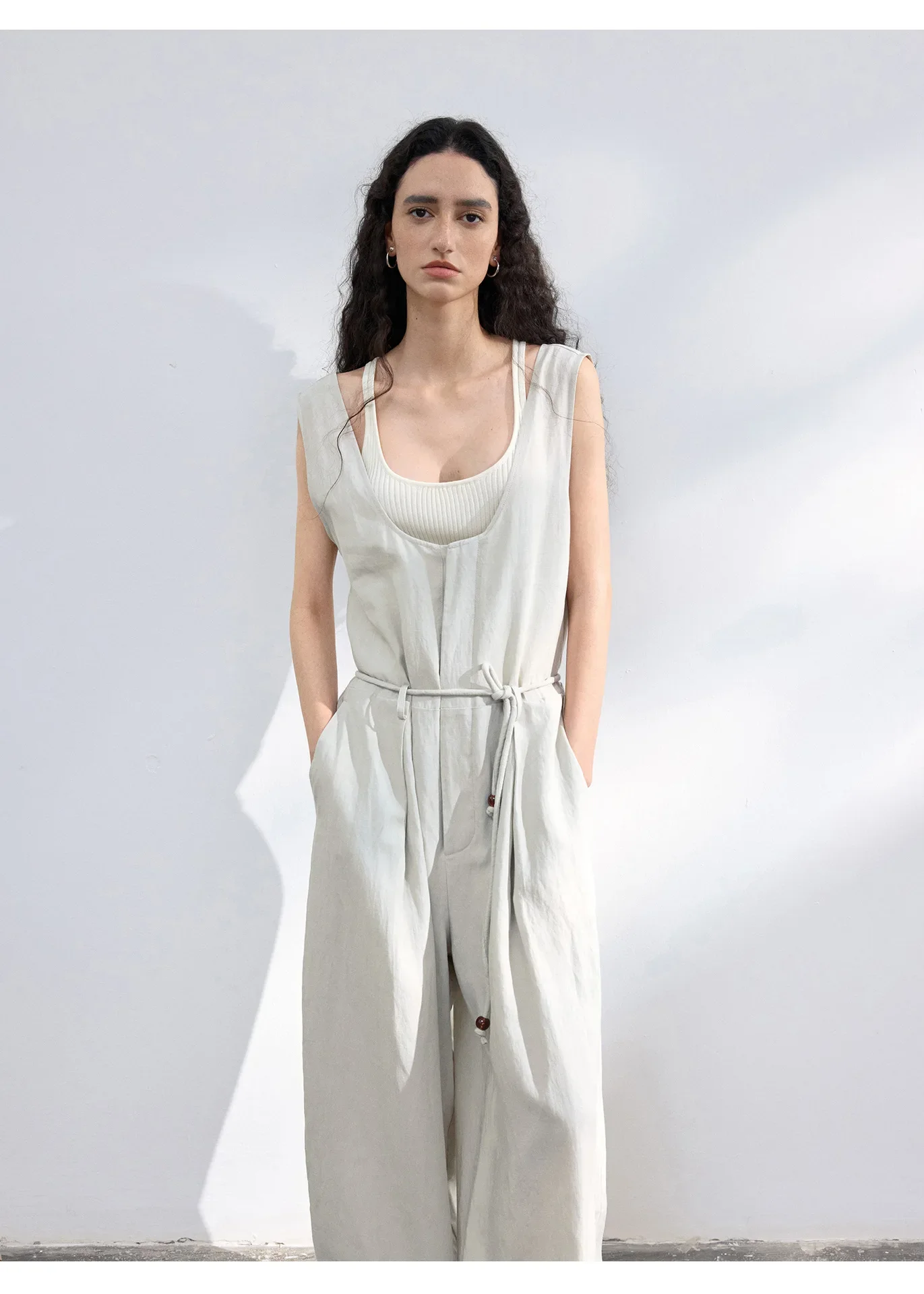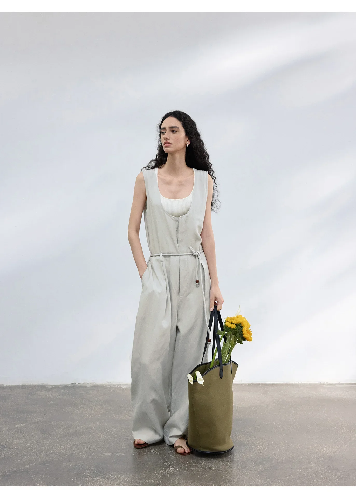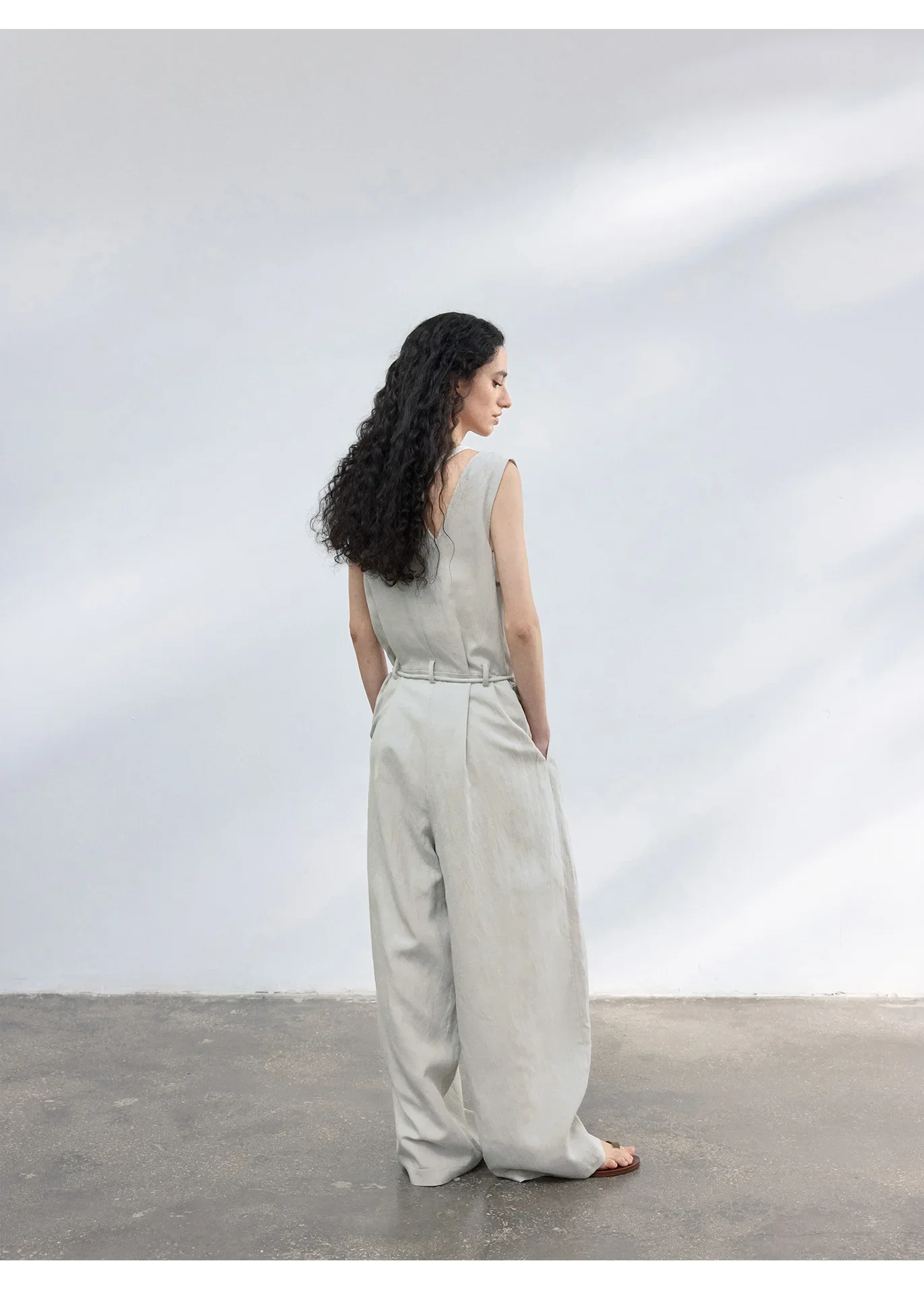 Colne U-Neck Linen Blend Vest And Knife Pleat One-Piece Pants Women's Fashion Design Sensation Tianli Material Long Pants
