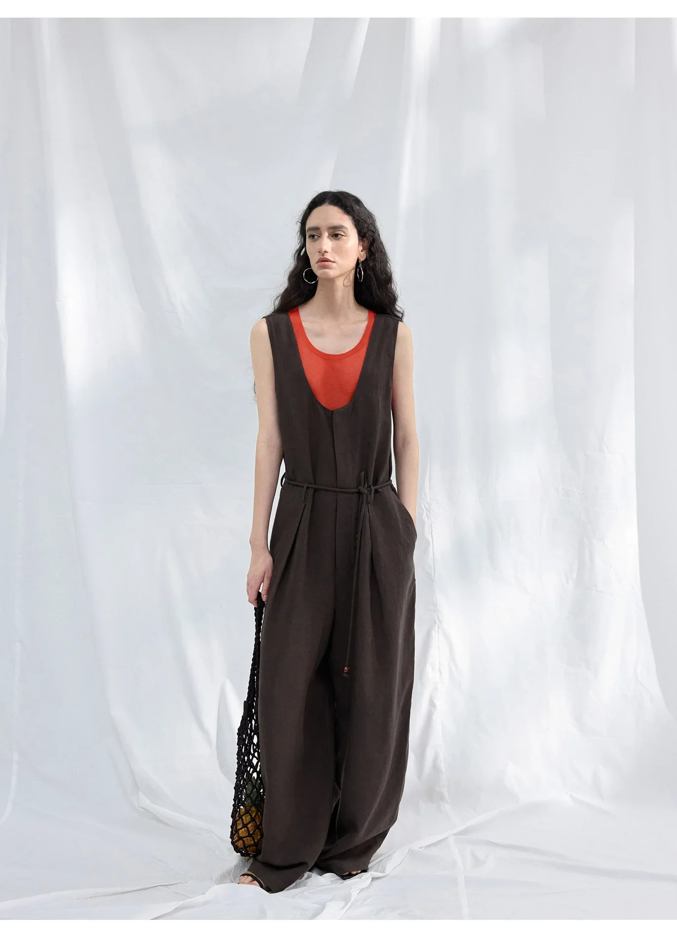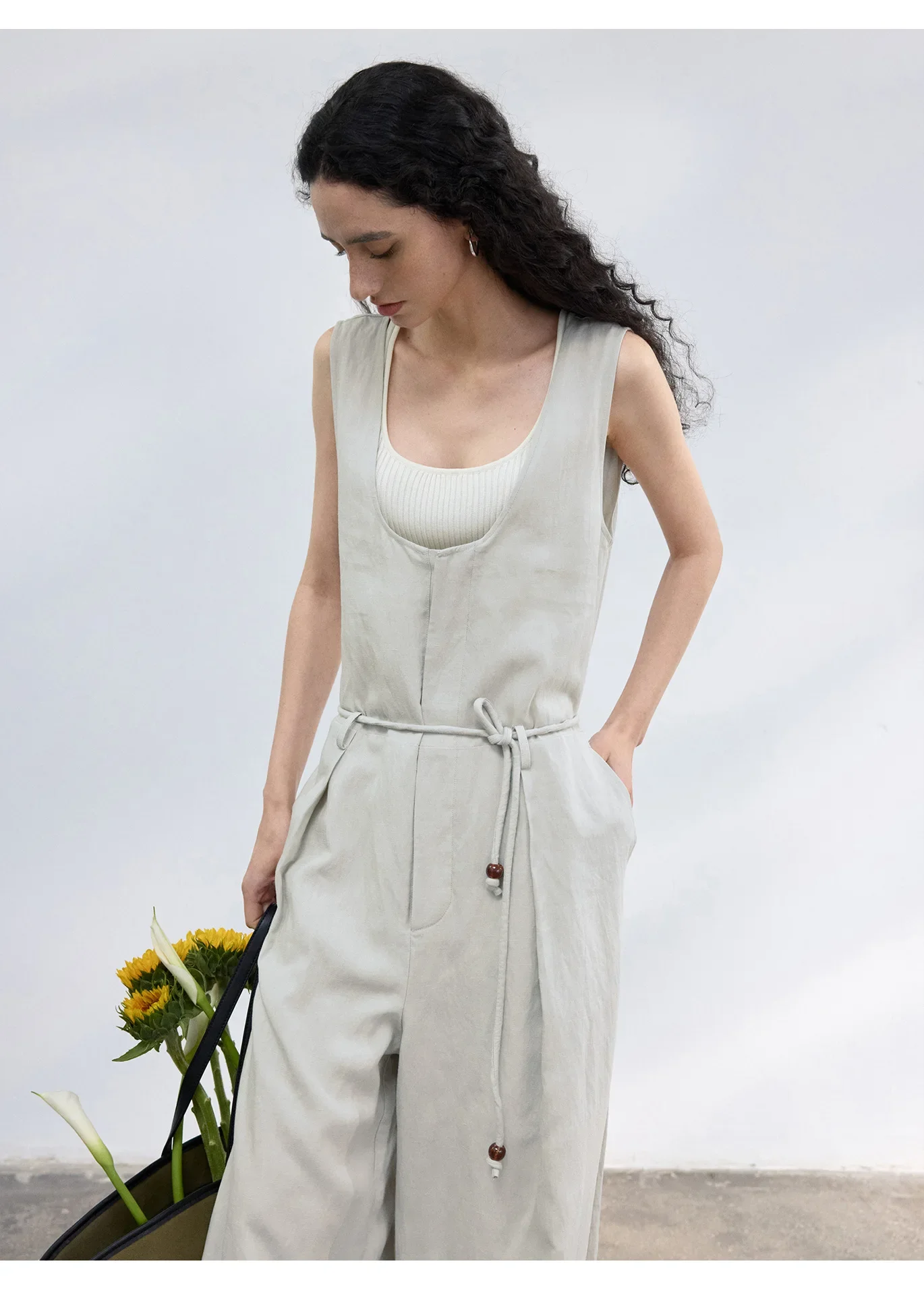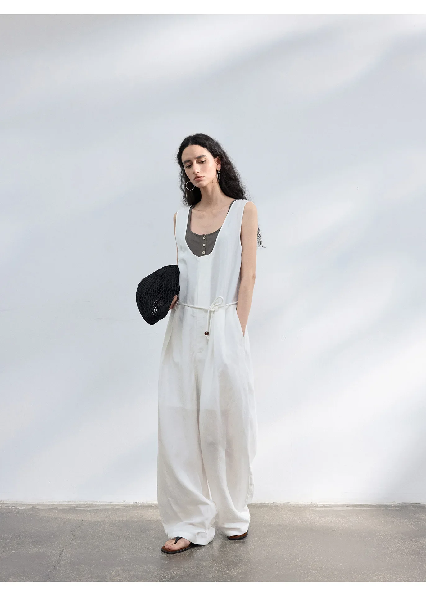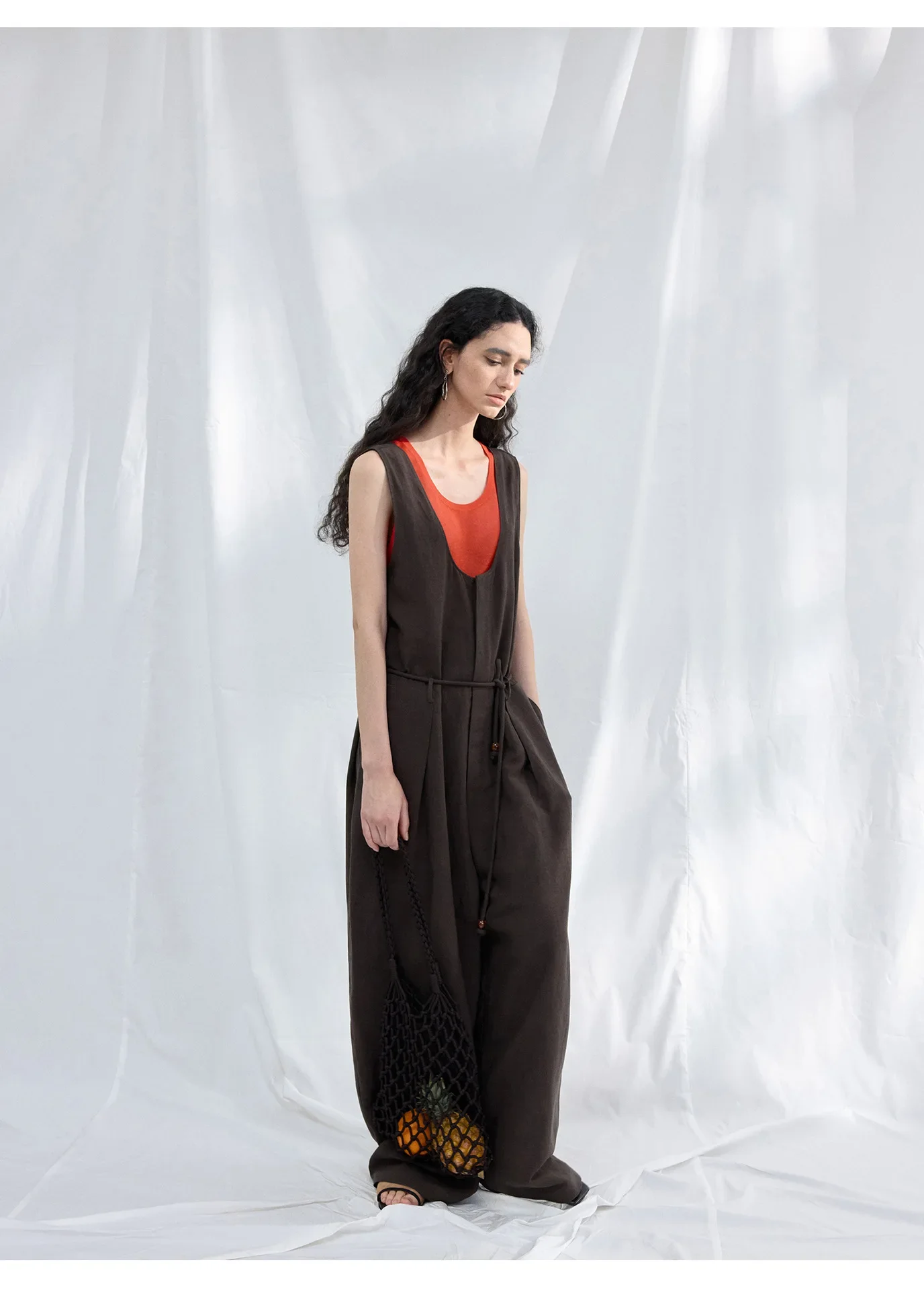 Colne U-Neck Linen Blend Vest And Knife Pleat One-Piece Pants Women's Fashion Design Sensation Tianli Material Long Pants