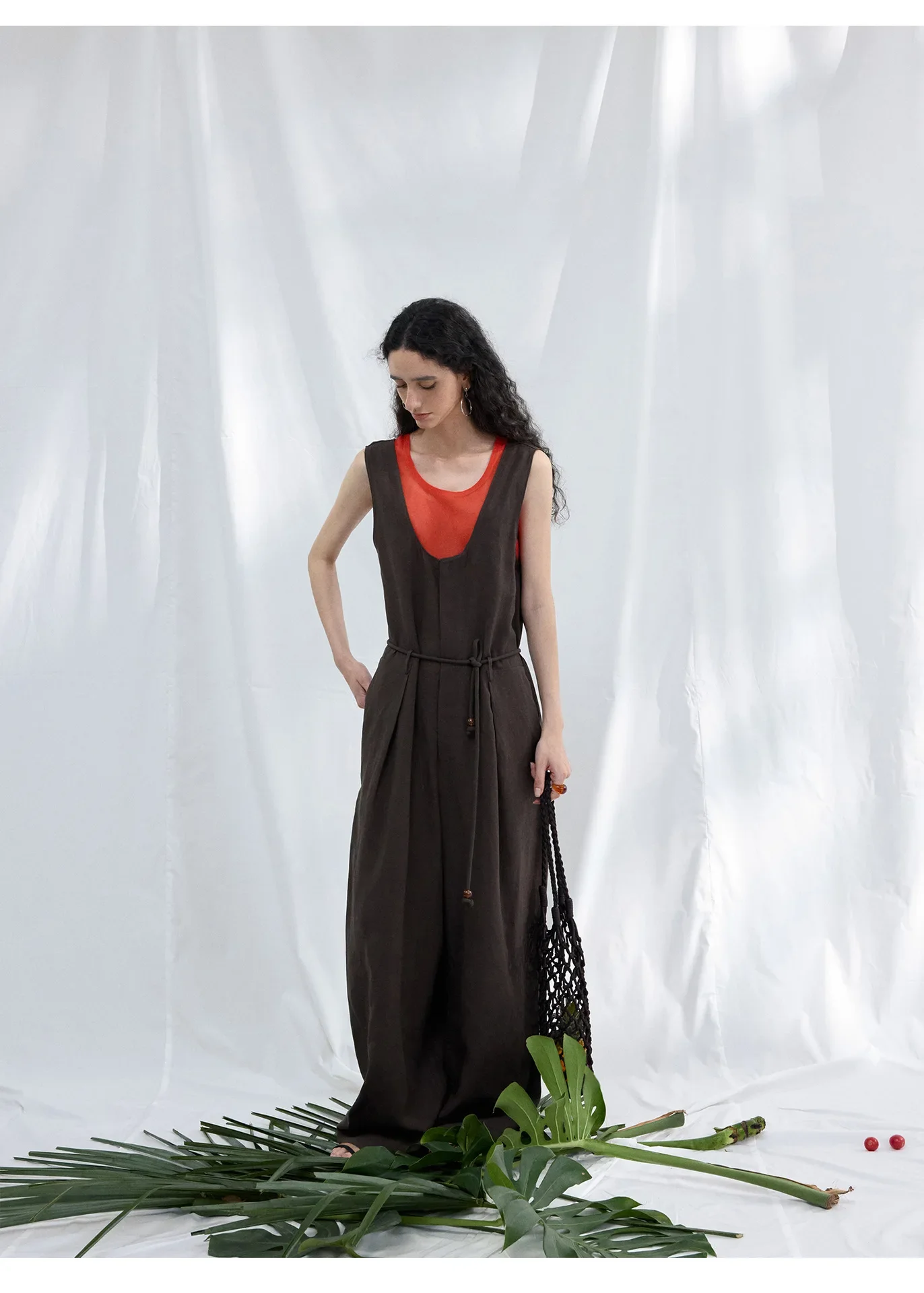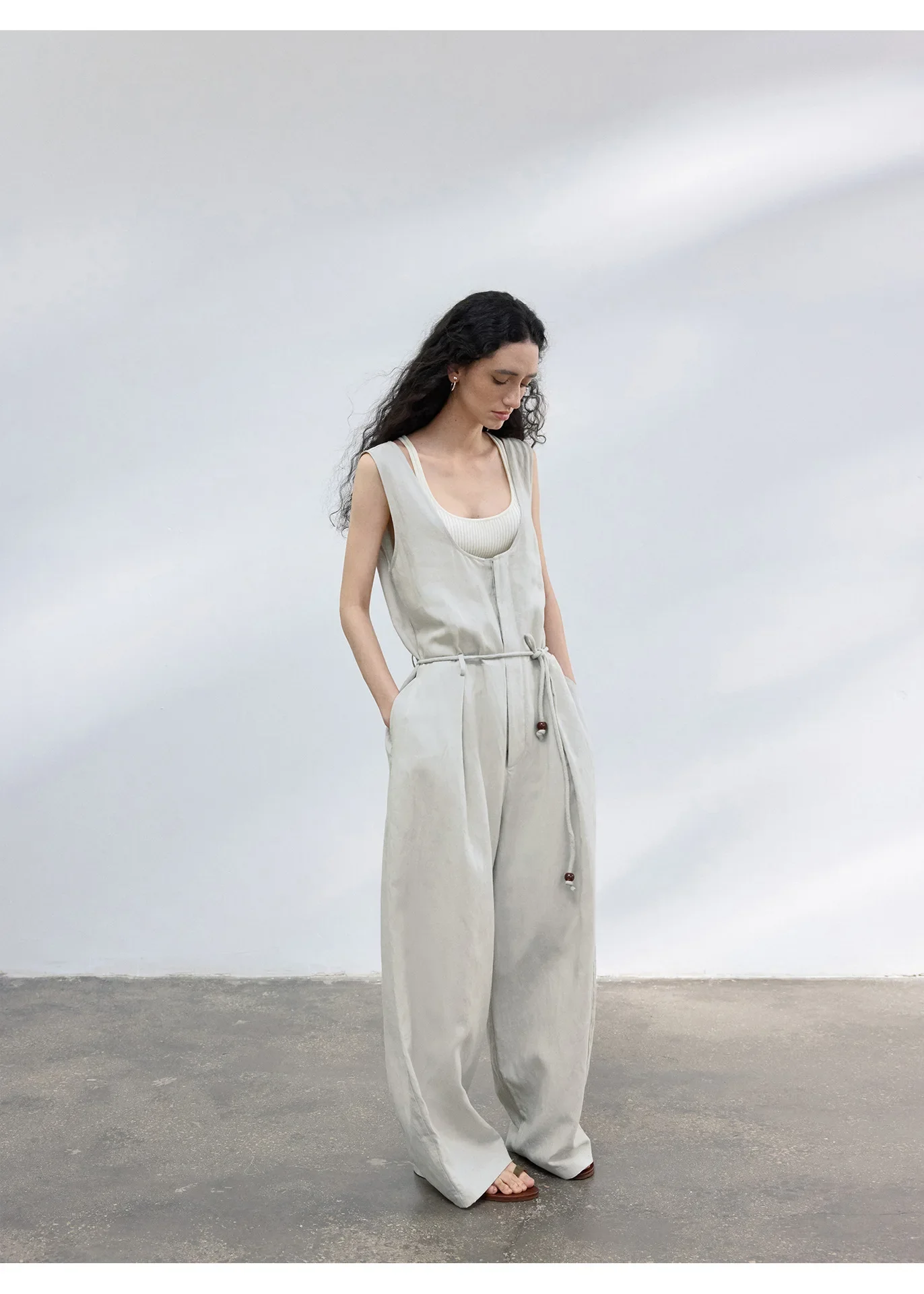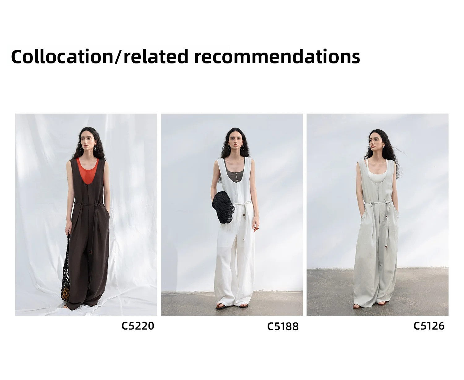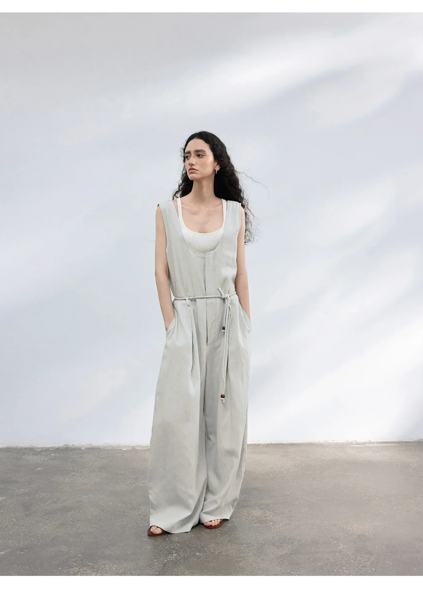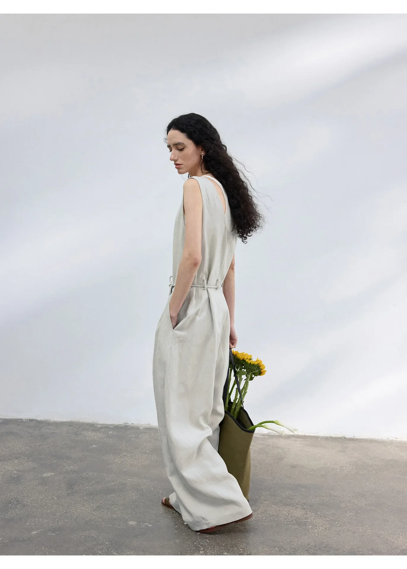Colne U-Neck Linen Blend Vest And Knife Pleat One-Piece Pants Women's Fashion Design Sensation Tianli Material Long Pants
