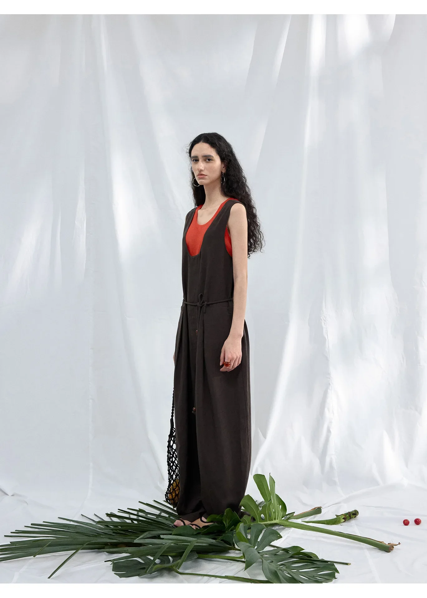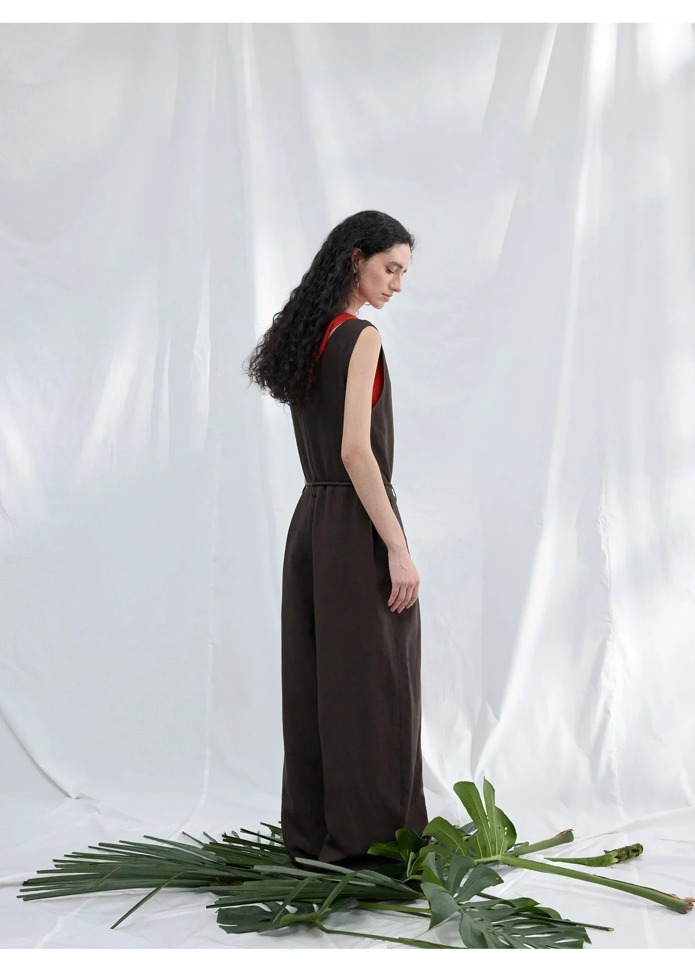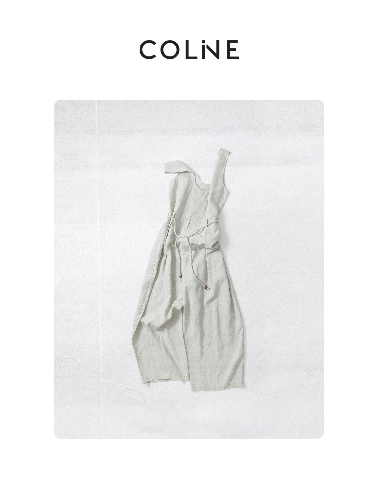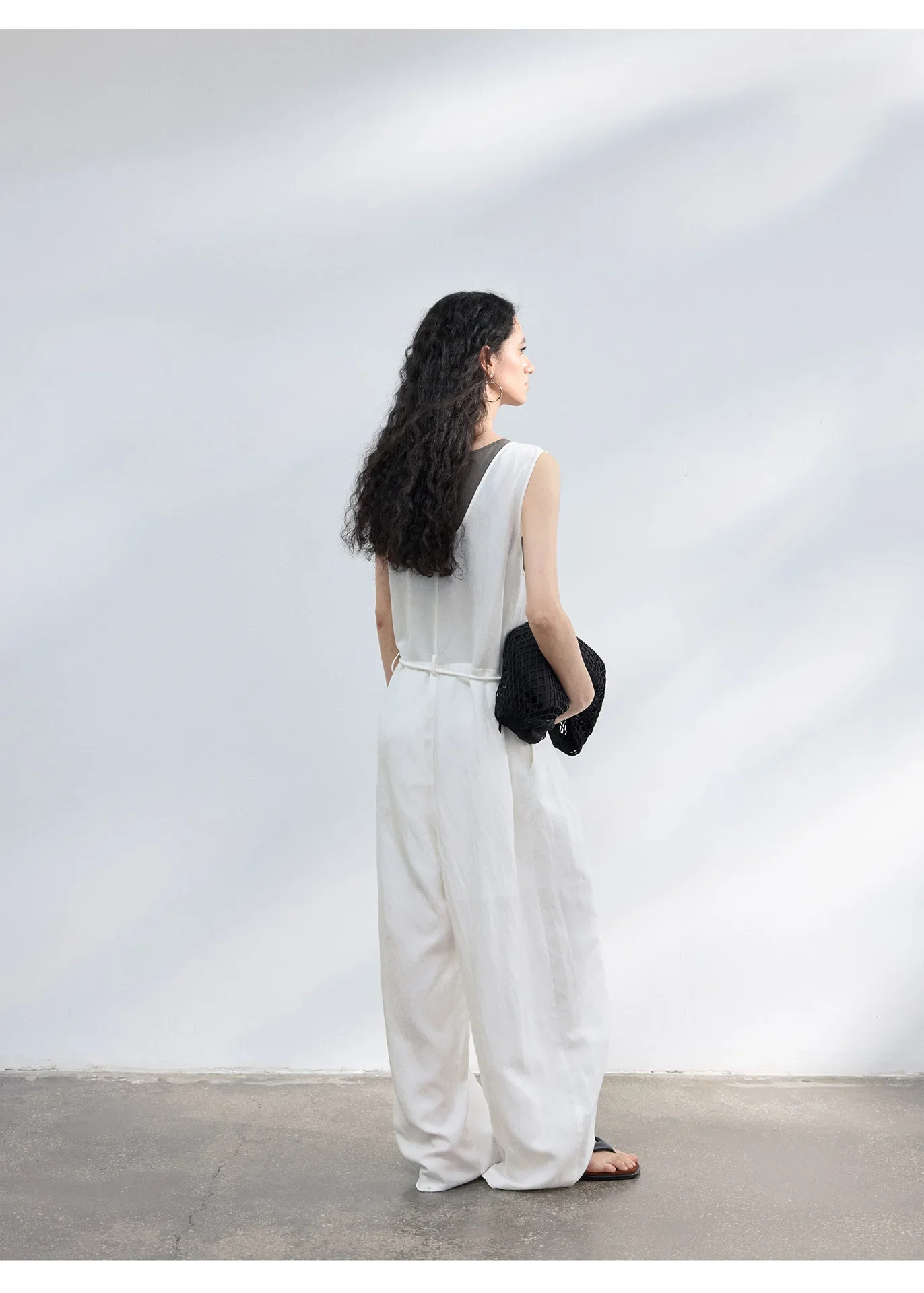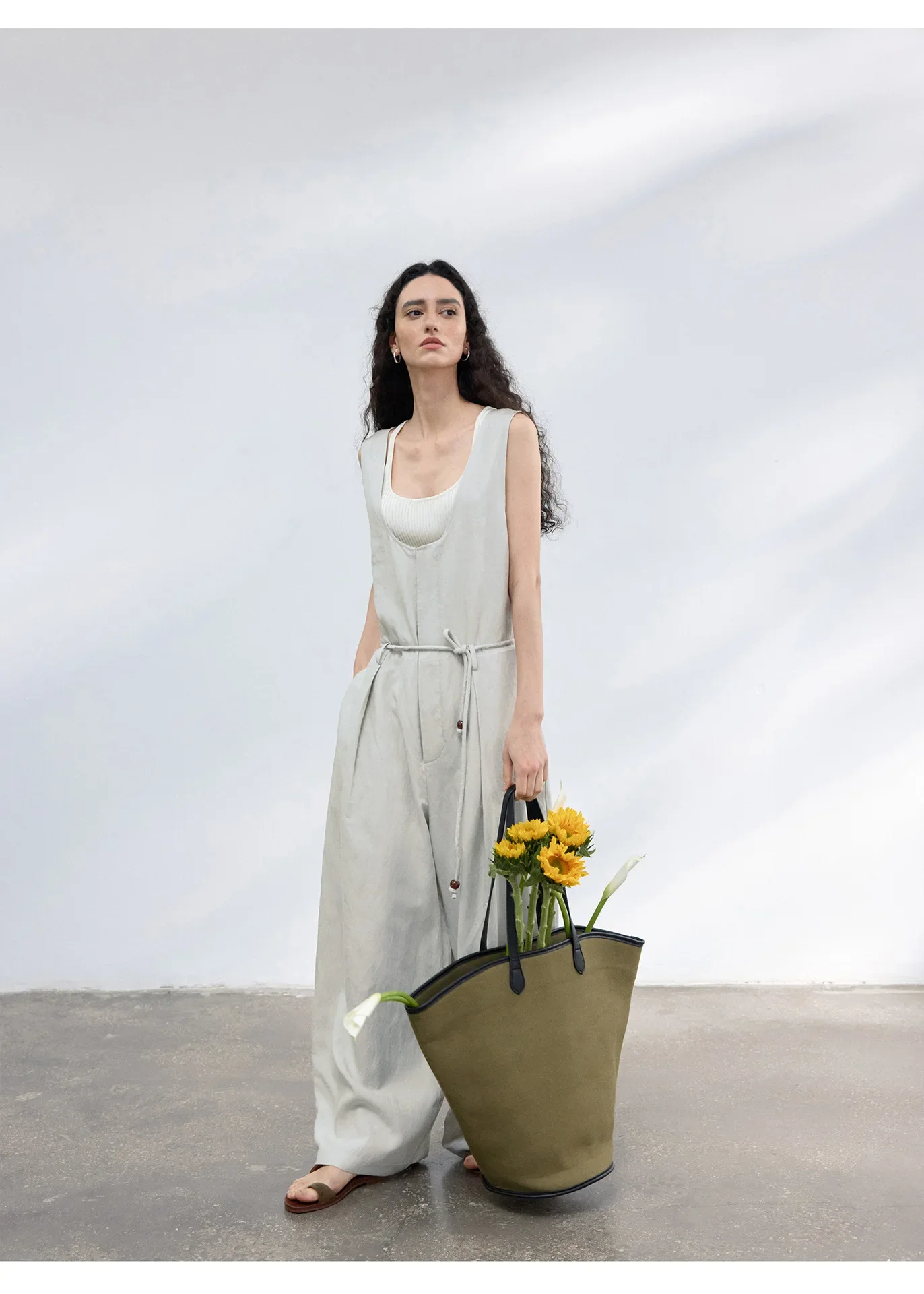 Colne U-Neck Linen Blend Vest And Knife Pleat One-Piece Pants Women's Fashion Design Sensation Tianli Material Long Pants