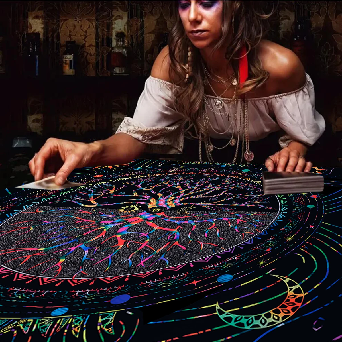 Colorful Life Tree Tarot Tablecloth Altar Cloth Sun And Moon Tarot Cards Table Cloth For Witchcraft Astrology Oracle Card Mat