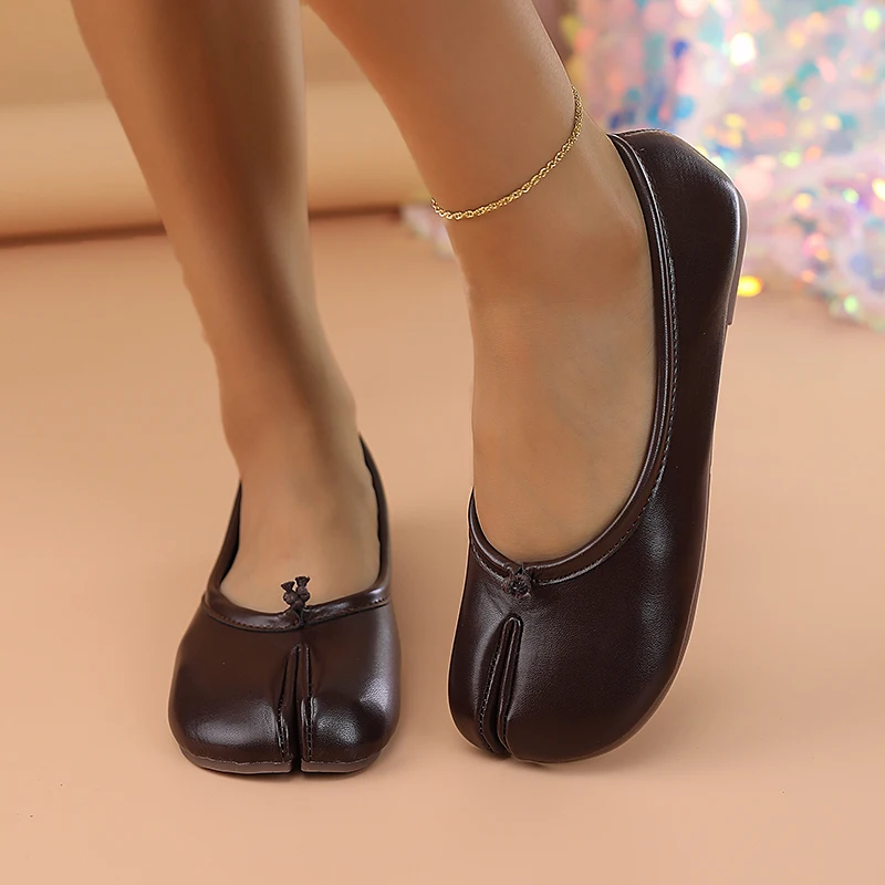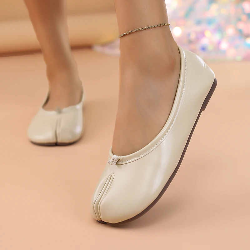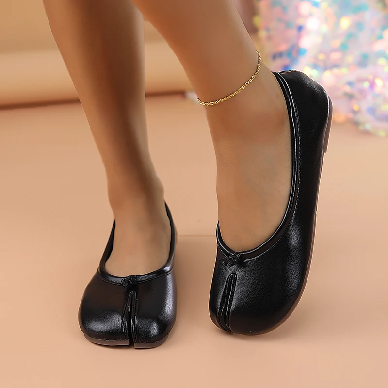 Comfortable Tabi Split Toe Ballet Flats: Style Meets Unmatched Comfort Step into all-day ease with our Comfortable Tabi Split Toe Ballet Flats, designed to blend effortless style with ultimate coziness. The innovative split-toe (Tabi) design not only adds a unique, modern twist but also promotes natural foot movement, reducing fatigue during long walks or busy days. Crafted with a soft, flexible sole and breathable lining, these flats prioritize your comfort without compromising on aesthetics. The **ruffled Mary Jane strap elevates the classic silhouette with a playful, textured detail, adding a touch of femininity to any outfit. Whether you’re running errands or meeting friends, the subtleFold (ruffled) accents ensure you stay chic from morning to night. The pig hoof-inspired shape offers a roomy toe box, preventing cramping and enhancing wearability for all-day comfort. Perfect for street-style enthusiasts**, these flats effortlessly transition from casual coffee runs to evening strolls. Pair them with cropped jeans, midi skirts, or even tailored trousers for a versatile look that’s camera-ready. Their lightweight design makes them ideal for travel, while the timeless appeal ensures they’ll become a staple in your wardrobe. Elevate your footwear game with a pair that’s as comfortable as it is camera-friendly—because looking good shouldn’t mean sacrificing comfort.